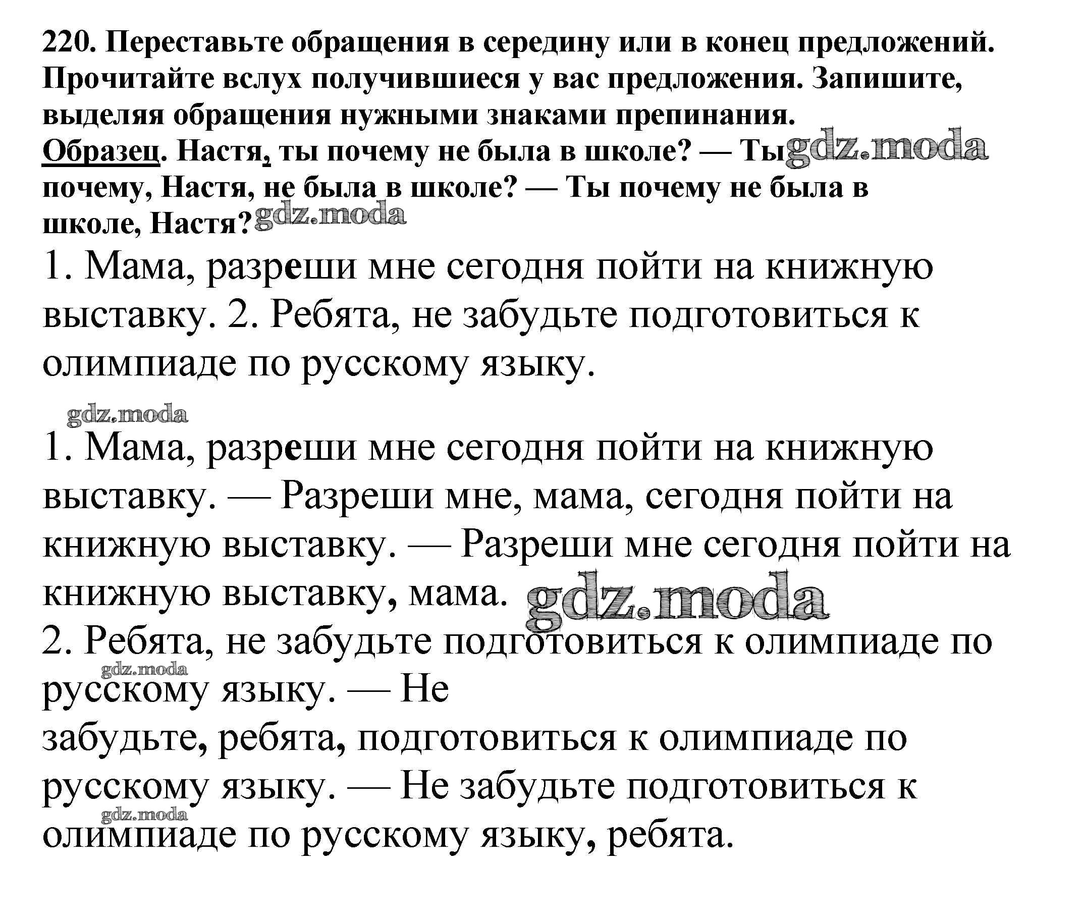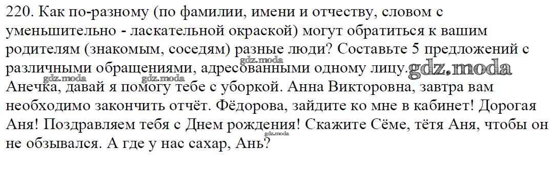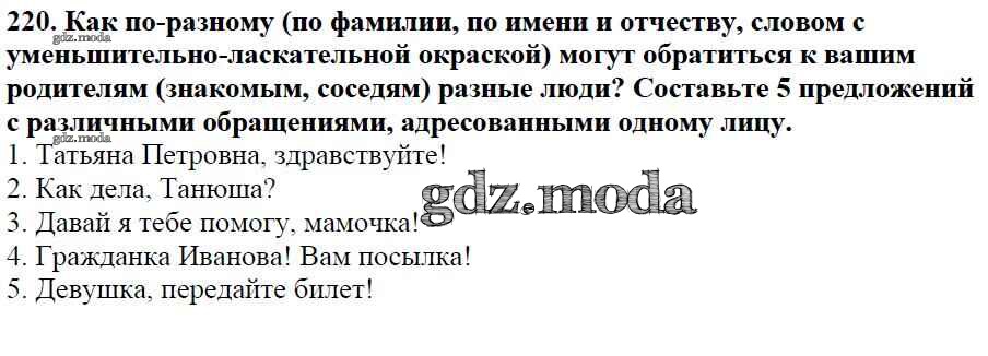 ОТВЕТ на задание № 220 Учебник по Русскому языку 5 класс Баранов