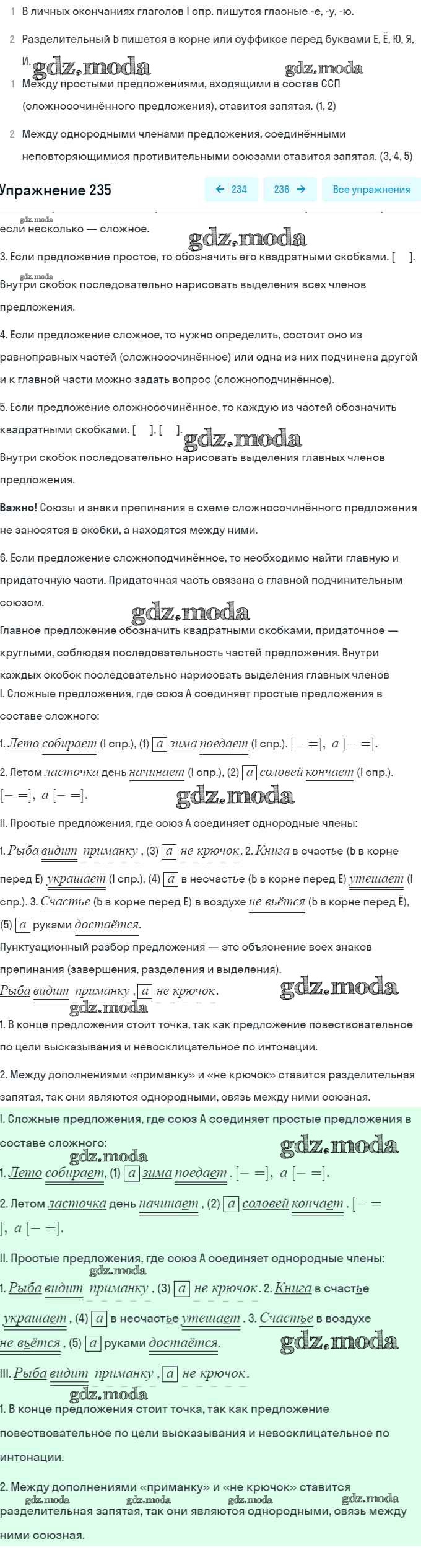 ГДЗ решение к заданию № 235 Русский язык 5 класс Ладыженская Т.А. Просвещение, Просвещение 2016, 2019 Часть 1, Часть 2 ФГОС бесплатно на гдз.мода!