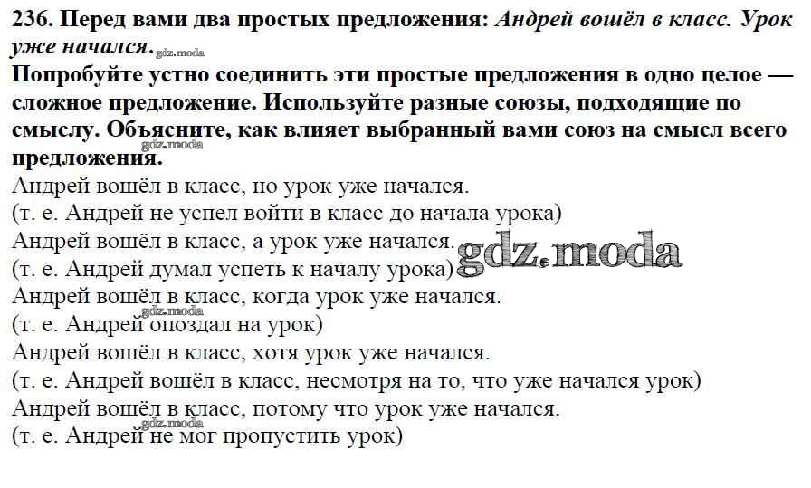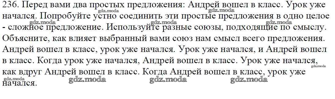 ОТВЕТ на задание № 236 Учебник по Русскому языку 5 класс Баранов