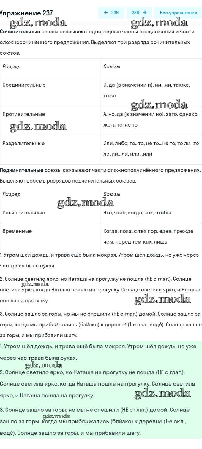 ГДЗ решение к заданию № 237 Русский язык 5 класс Ладыженская Т.А. Просвещение, Просвещение 2016, 2019 Часть 1, Часть 2 ФГОС бесплатно на гдз.мода!