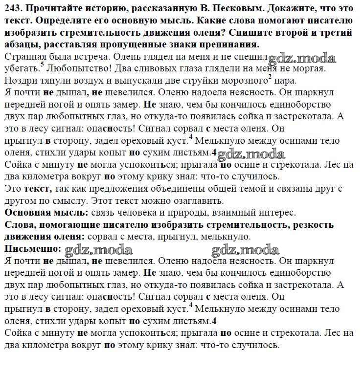 ОТВЕТ на задание № 243 Учебник по Русскому языку 5 класс Баранов