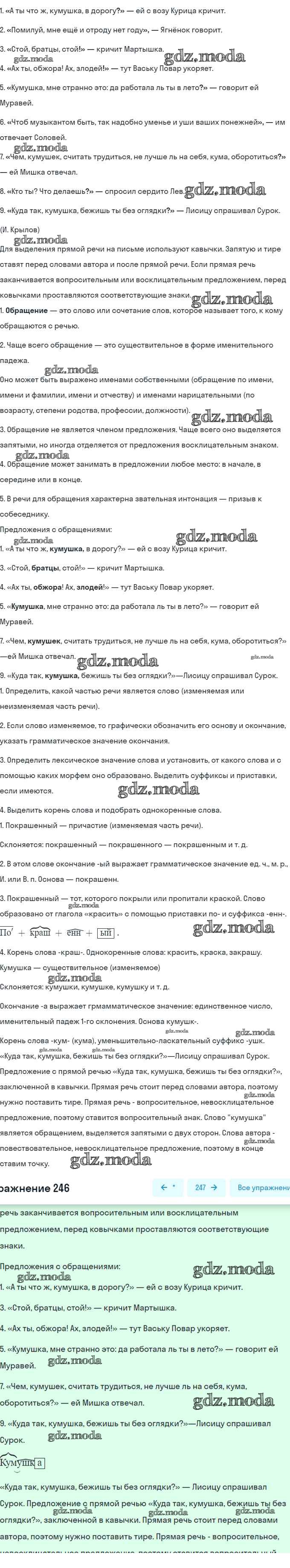ОТВЕТ на задание № 246 Учебник по Русскому языку 5 класс Баранов