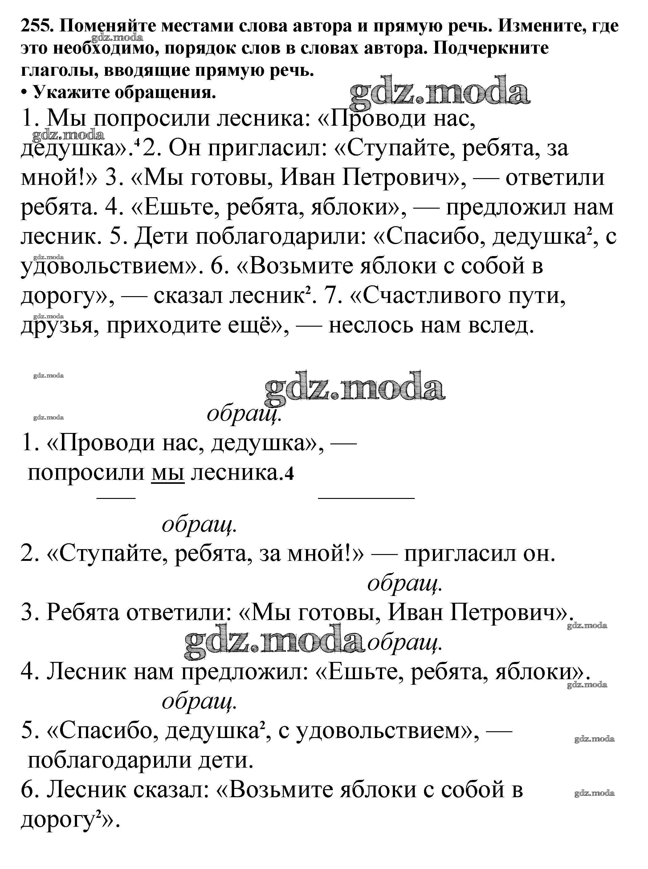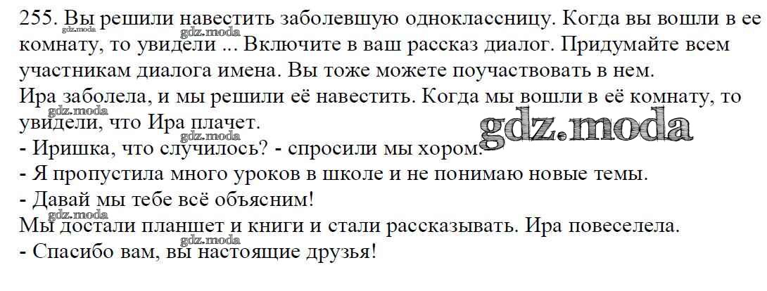 ОТВЕТ на задание № 255 Учебник по Русскому языку 5 класс Баранов