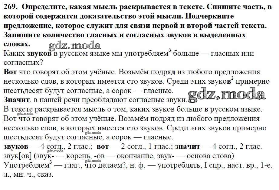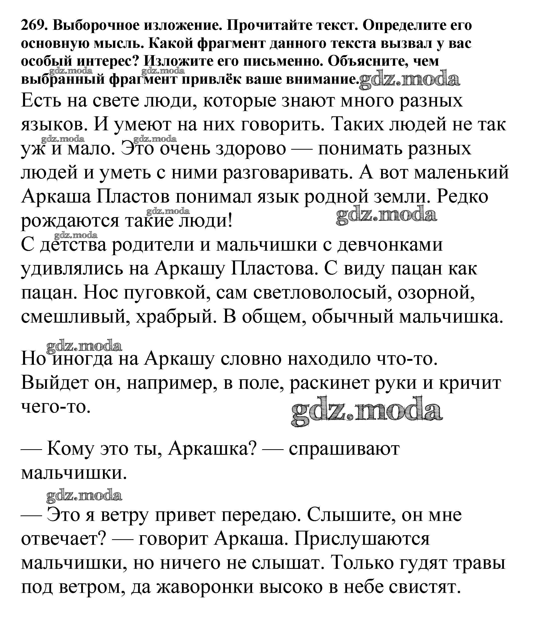 ОТВЕТ на задание № 269 Учебник по Русскому языку 5 класс Баранов