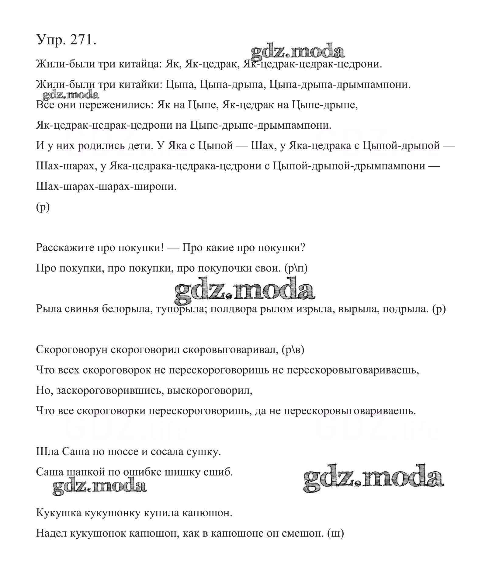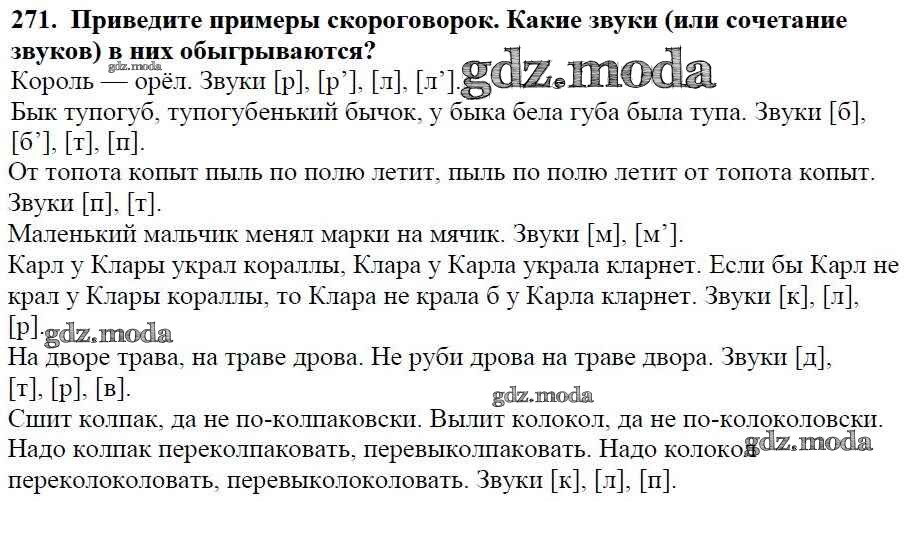 ОТВЕТ на задание № 271 Учебник по Русскому языку 5 класс Баранов