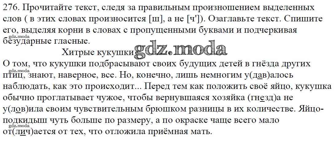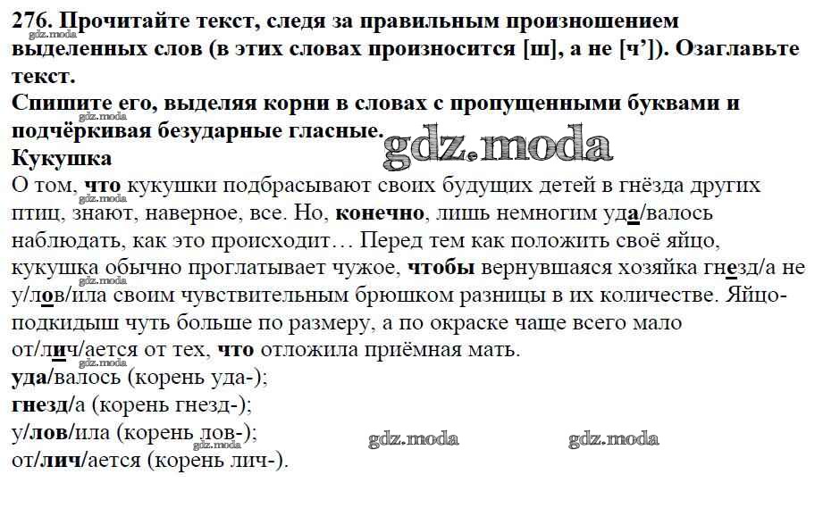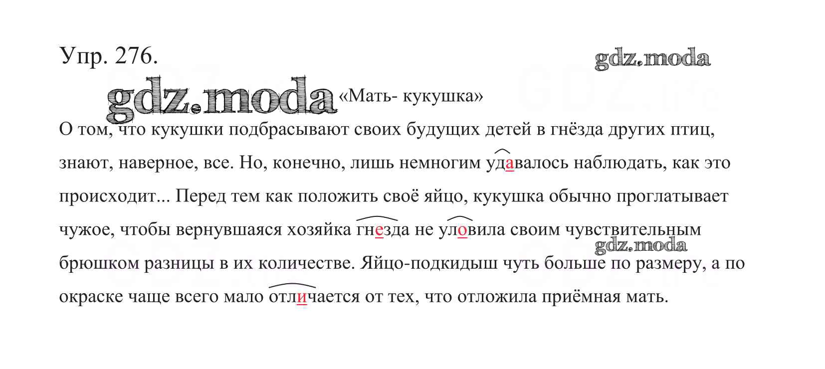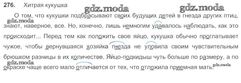 ОТВЕТ на задание № 276 Учебник по Русскому языку 5 класс Баранов
