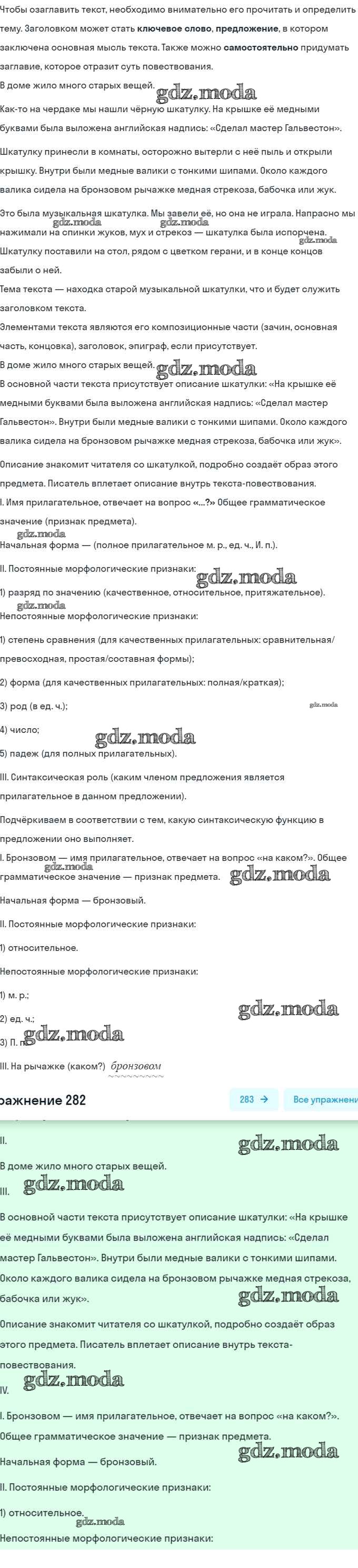 ОТВЕТ на задание № 282 Учебник по Русскому языку 5 класс Баранов