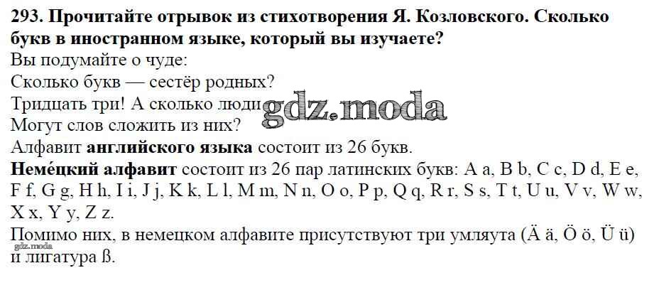 ОТВЕТ на задание № 293 Учебник по Русскому языку 5 класс Баранов