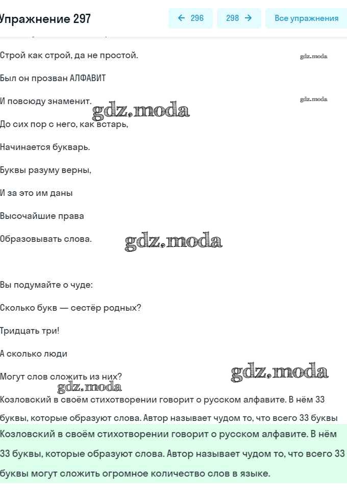 ОТВЕТ на задание № 297 Учебник по Русскому языку 5 класс Баранов