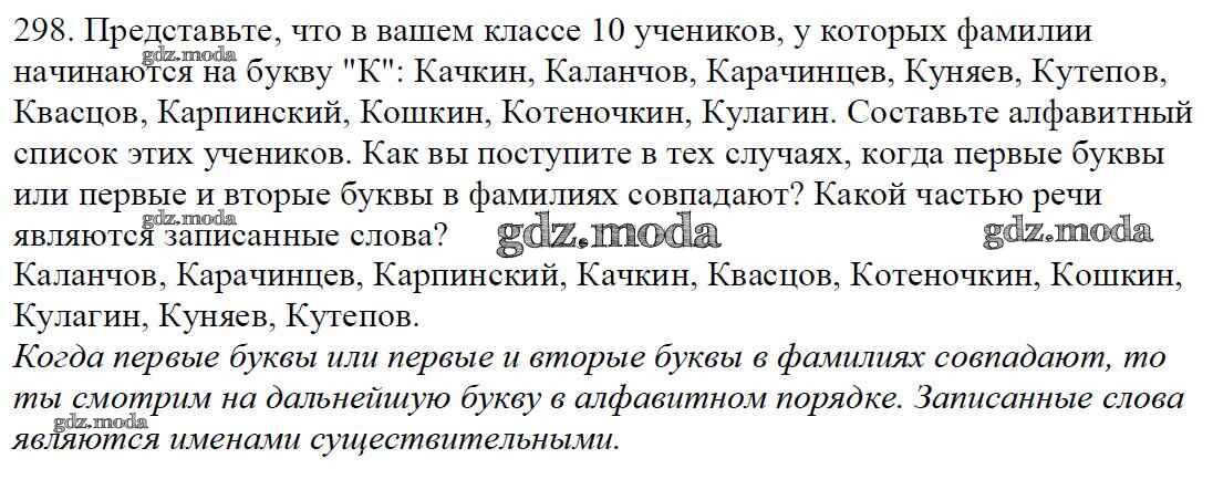 ОТВЕТ на задание № 298 Учебник по Русскому языку 5 класс Баранов