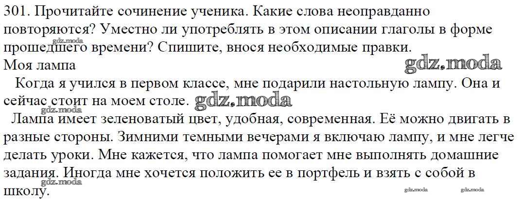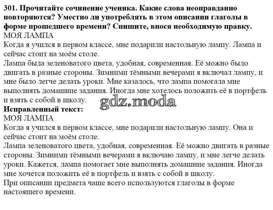 ОТВЕТ на задание № 301 Учебник по Русскому языку 5 класс Баранов