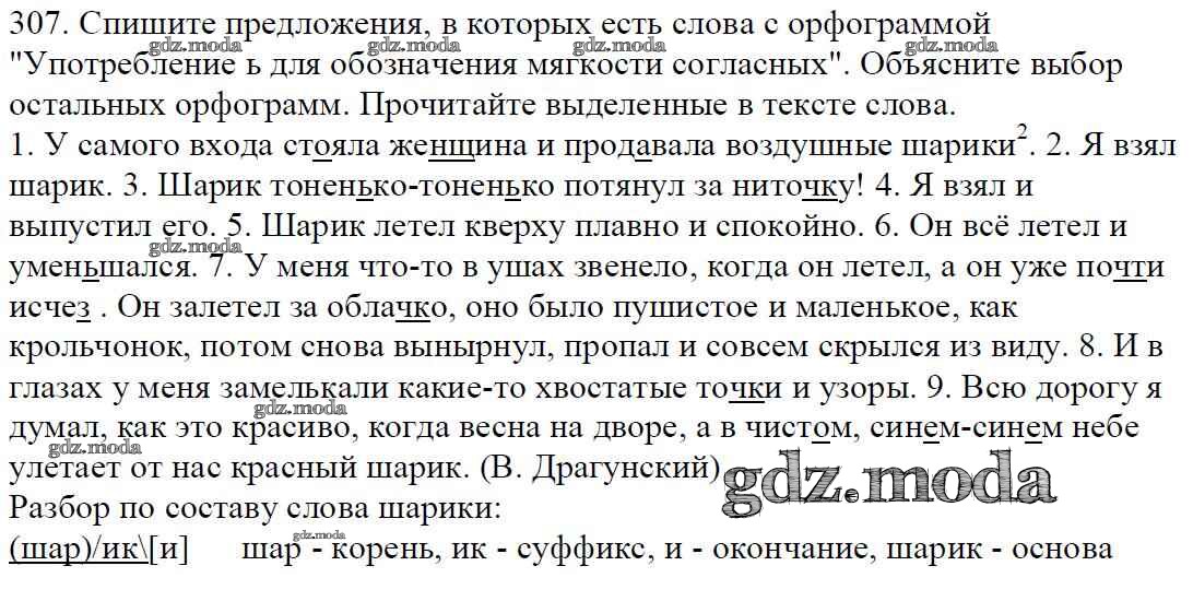 ОТВЕТ на задание № 307 Учебник по Русскому языку 5 класс Баранов