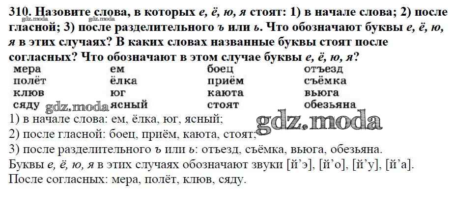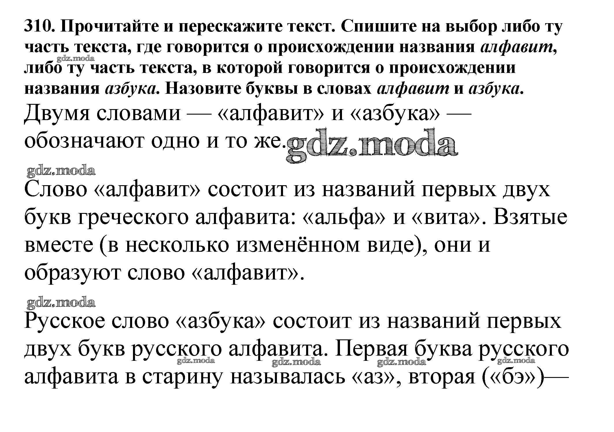 ОТВЕТ на задание № 310 Учебник по Русскому языку 5 класс Баранов