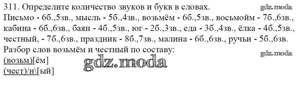 ОТВЕТ на задание № 311 Учебник по Русскому языку 5 класс Баранов