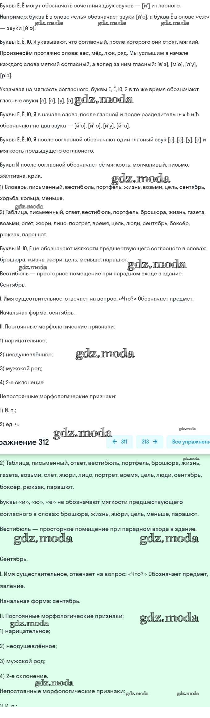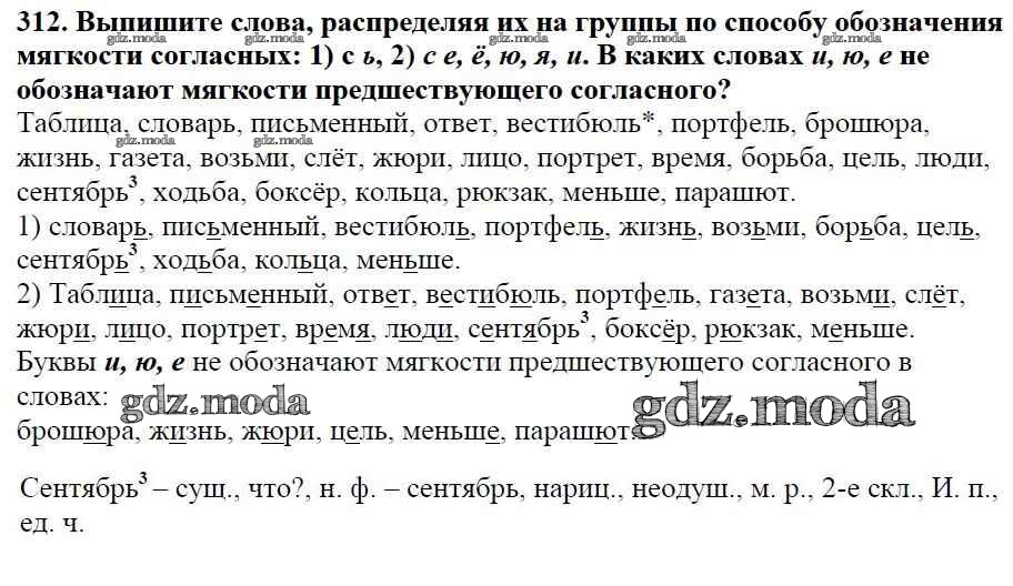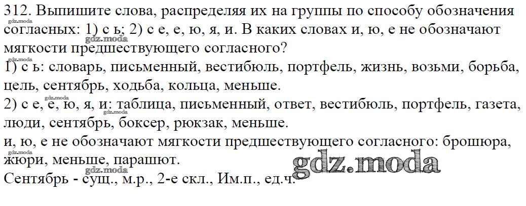 ОТВЕТ на задание № 312 Учебник по Русскому языку 5 класс Баранов