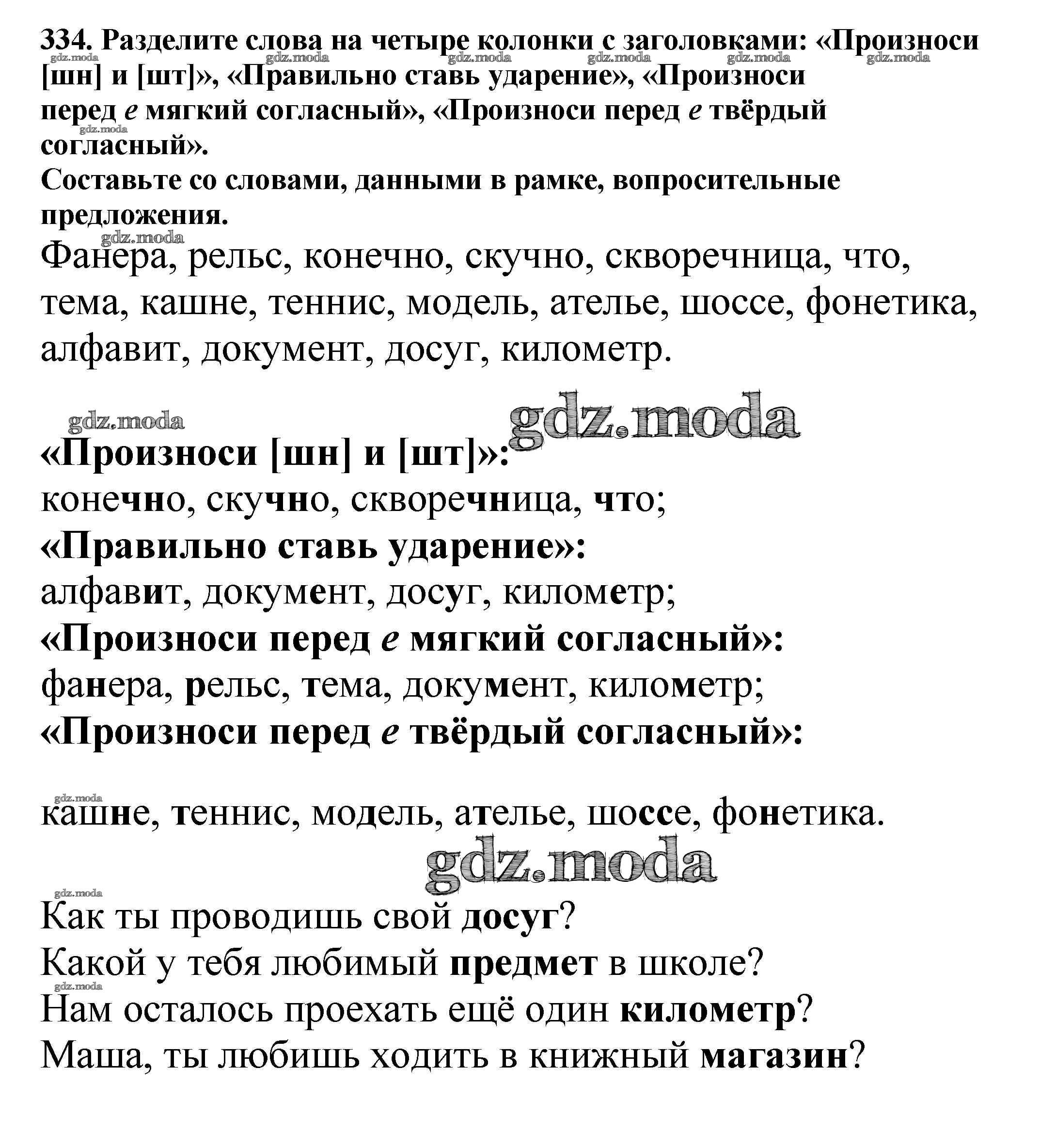 ОТВЕТ на задание № 334 Учебник по Русскому языку 5 класс Баранов