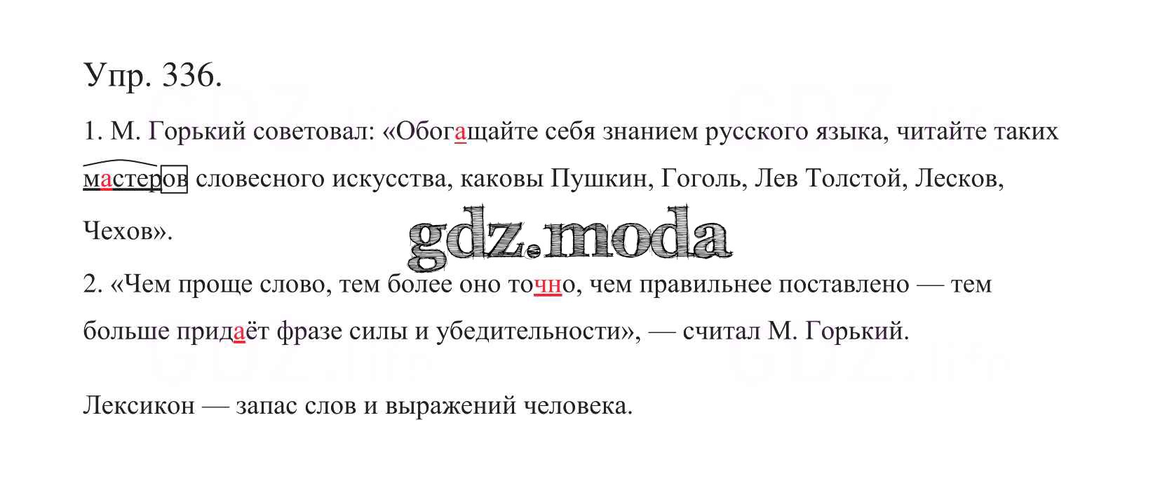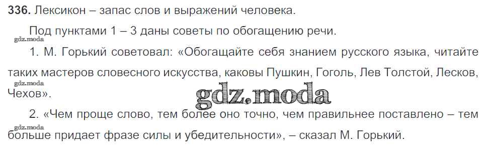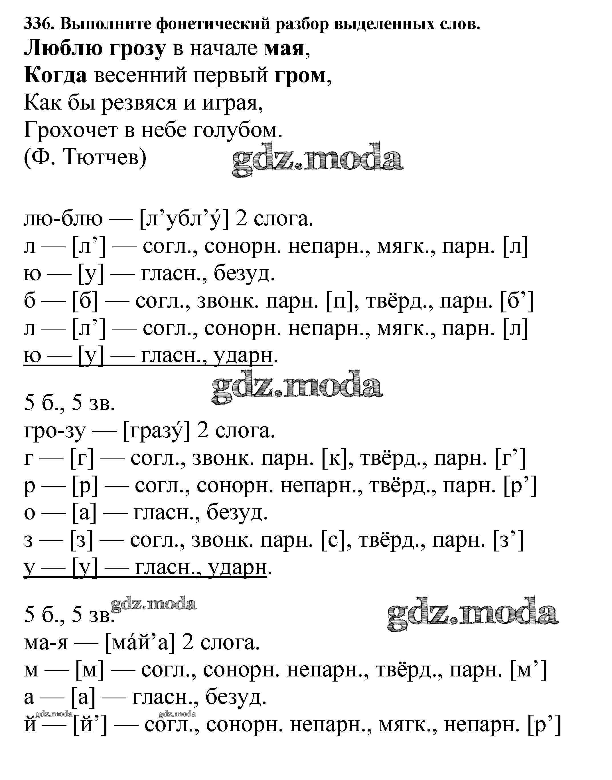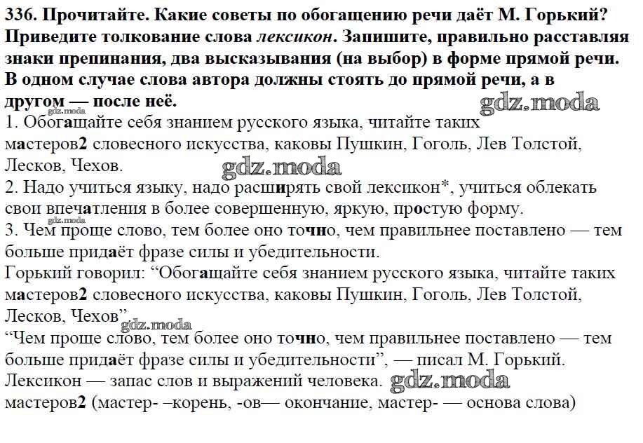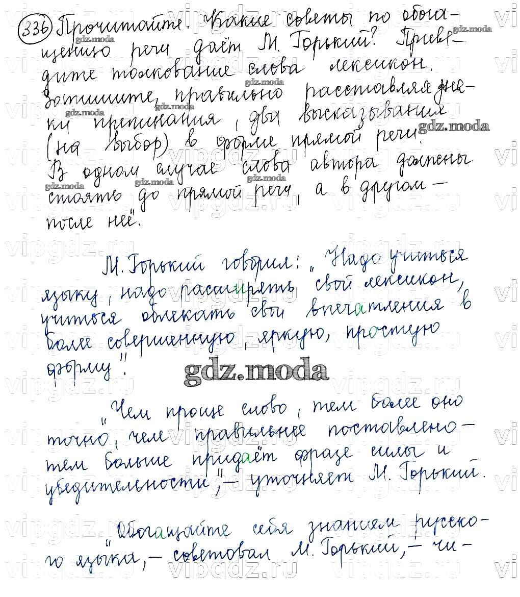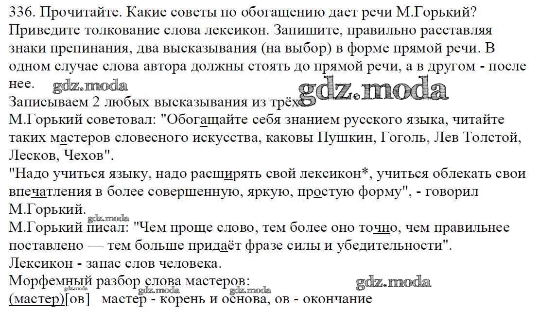 ОТВЕТ на задание № 336 Учебник по Русскому языку 5 класс Баранов