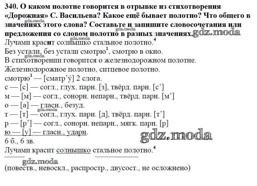 ОТВЕТ на задание № 340 Учебник по Русскому языку 5 класс Баранов