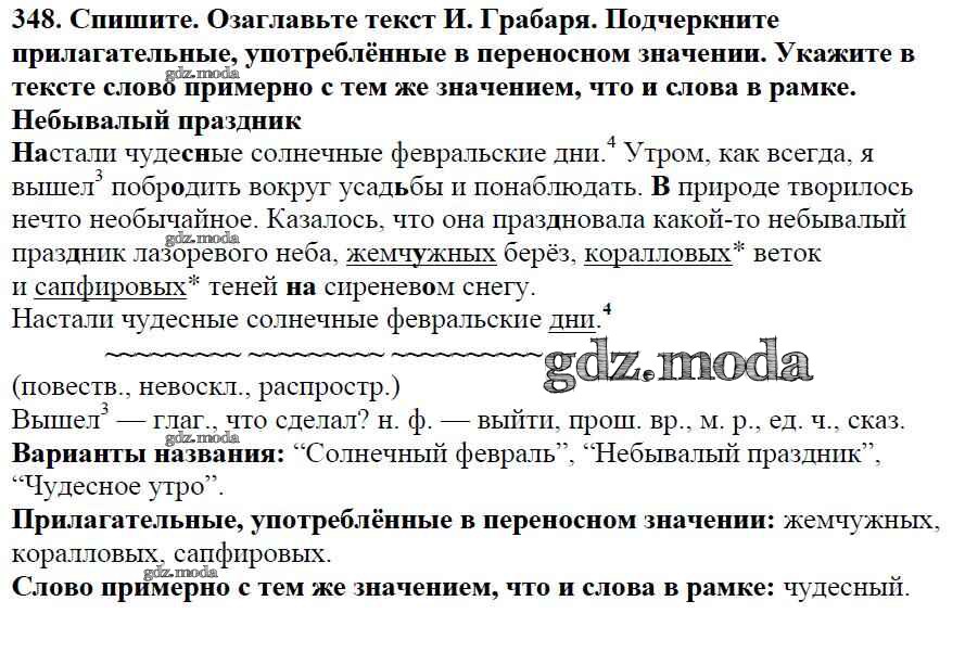 ОТВЕТ на задание № 348 Учебник по Русскому языку 5 класс Баранов