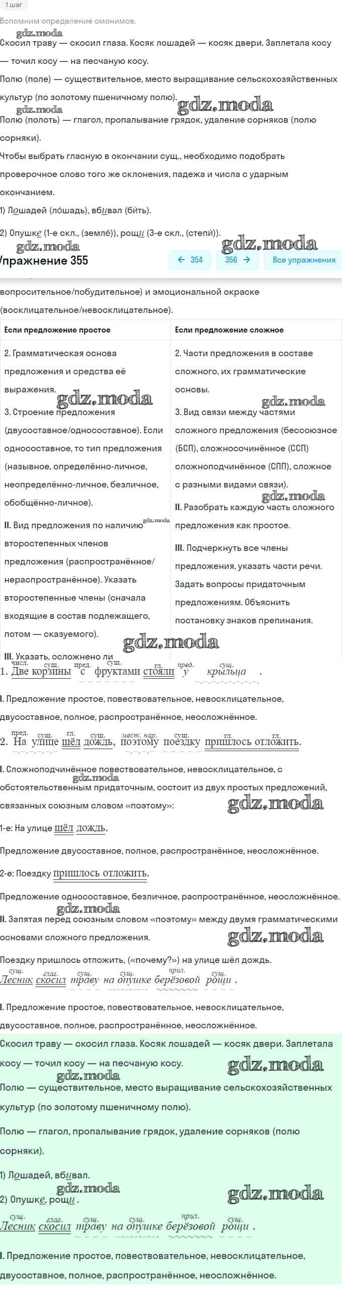 ОТВЕТ на задание № 355 Учебник по Русскому языку 5 класс Баранов