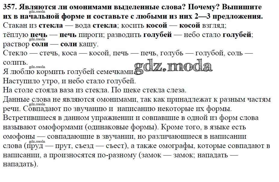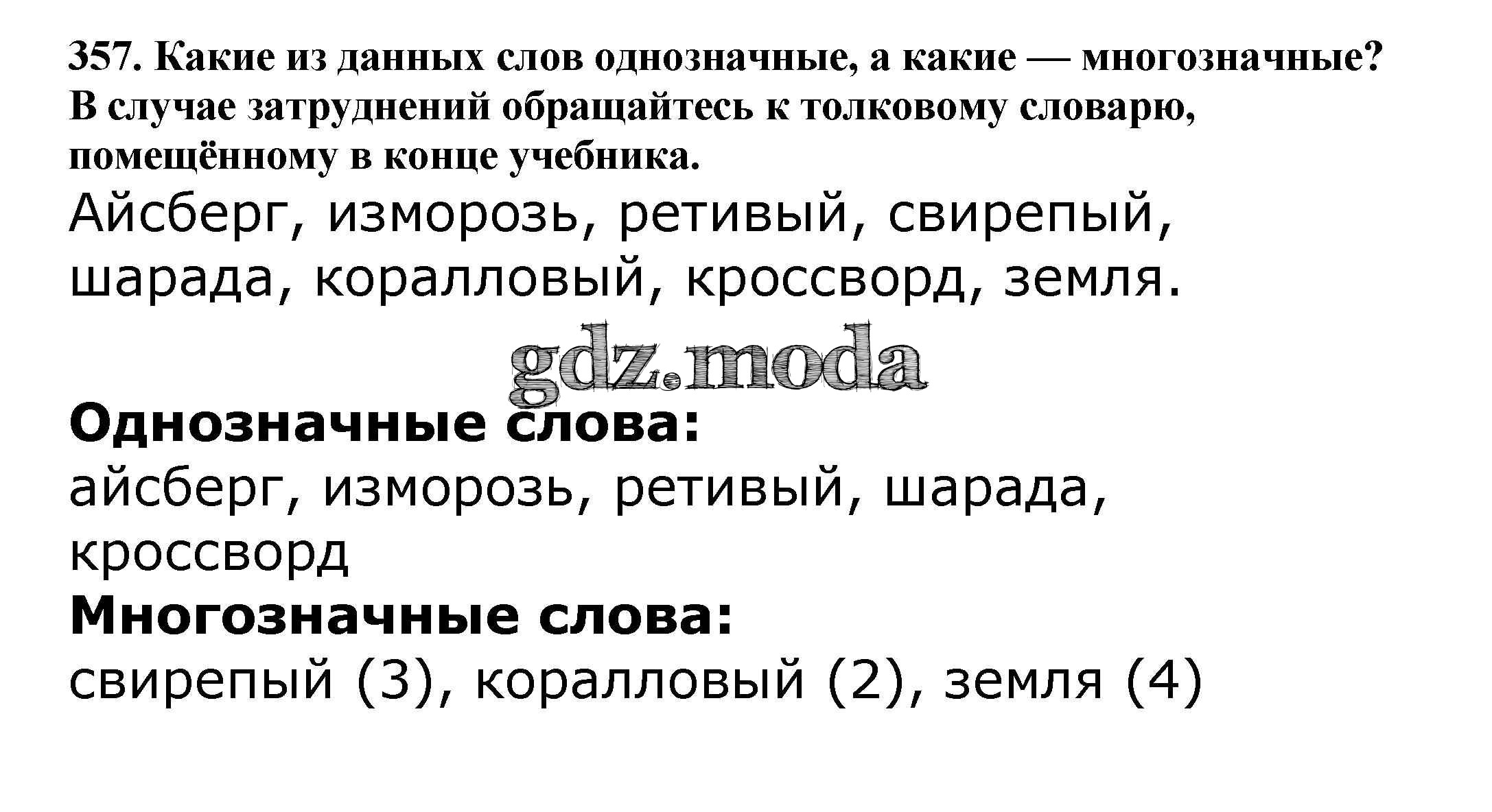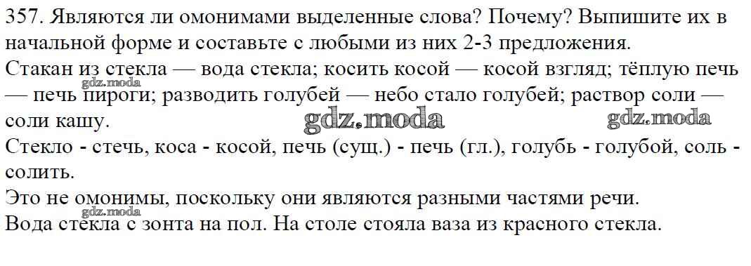 ОТВЕТ на задание № 357 Учебник по Русскому языку 5 класс Баранов