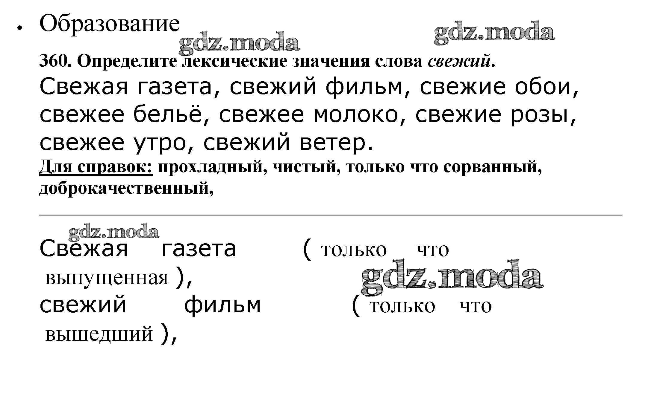 ОТВЕТ на задание № 360 Учебник по Русскому языку 5 класс Баранов