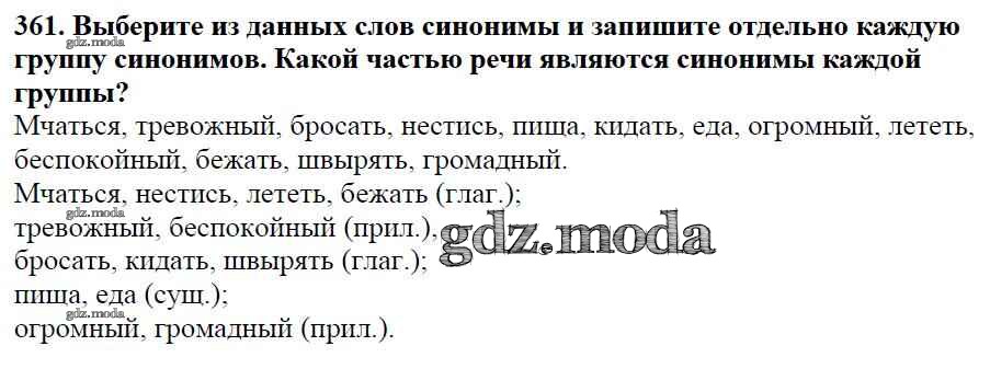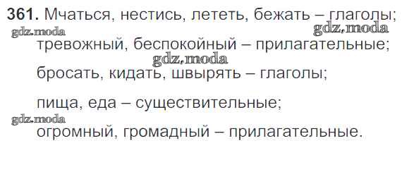 ОТВЕТ на задание № 361 Учебник по Русскому языку 5 класс Баранов
