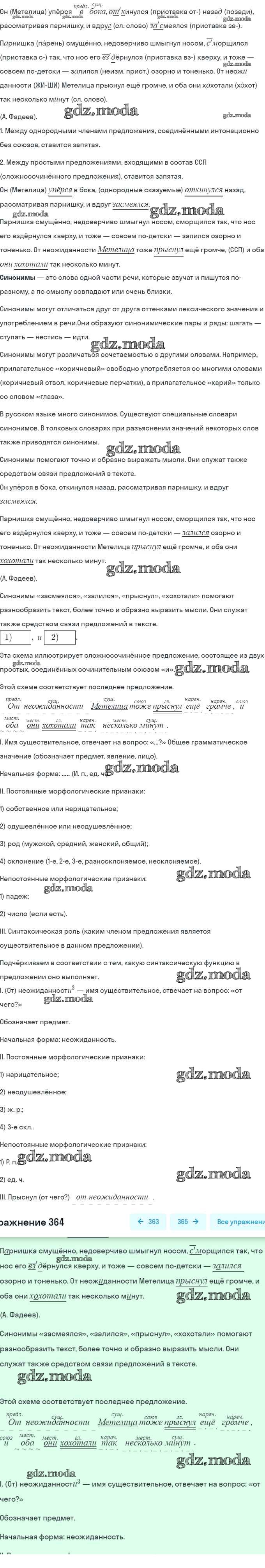 ГДЗ решение к заданию № 364 Русский язык 5 класс Ладыженская Т.А. Просвещение, Просвещение 2016, 2019 Часть 1, Часть 2 ФГОС бесплатно на гдз.мода!