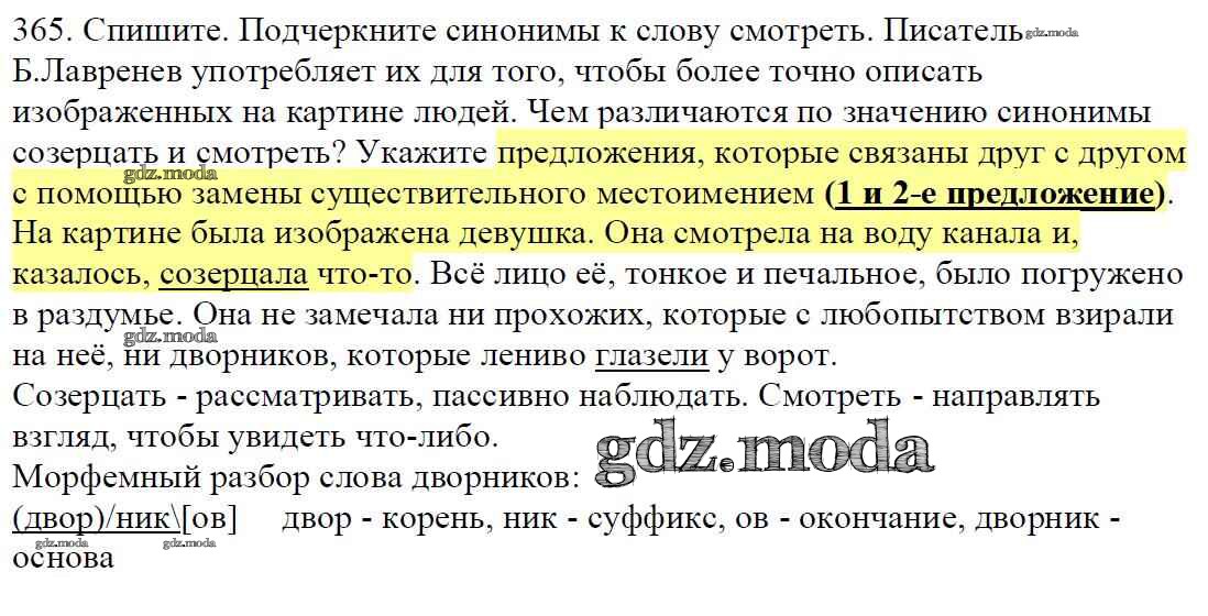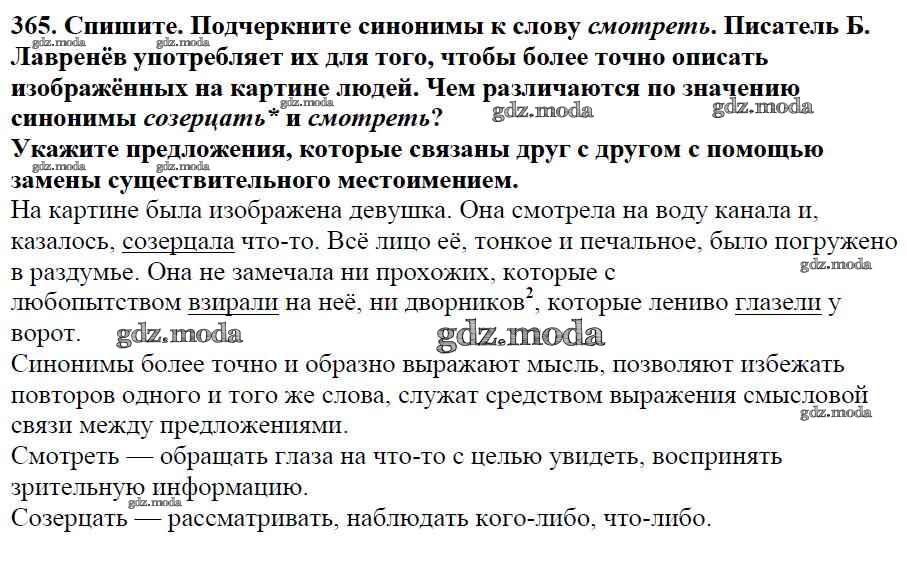 ОТВЕТ на задание № 365 Учебник по Русскому языку 5 класс Баранов