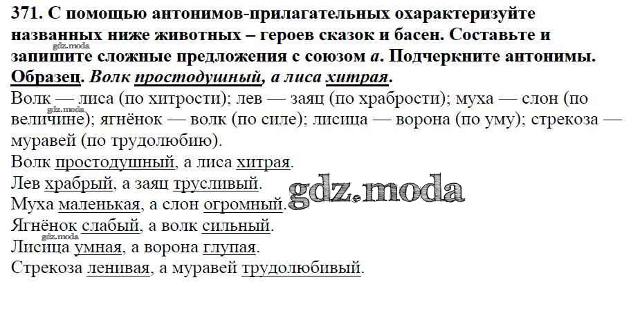 ОТВЕТ на задание № 371 Учебник по Русскому языку 5 класс Баранов