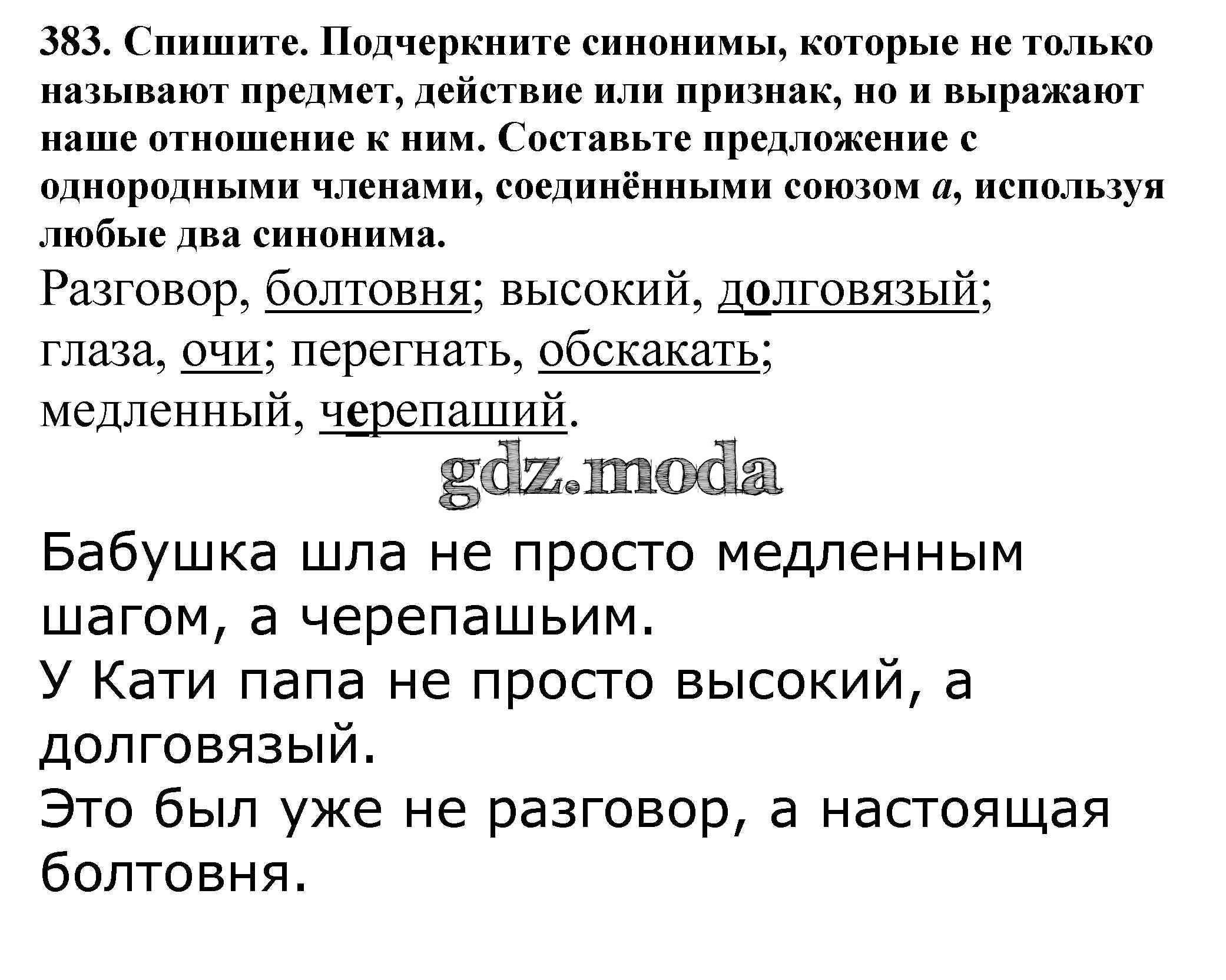 ГДЗ решение к заданию № 383 Русский язык 5 класс Ладыженская Т.А. Просвещение, Просвещение 2016, 2019 Часть 1, Часть 2 ФГОС бесплатно на гдз.мода!