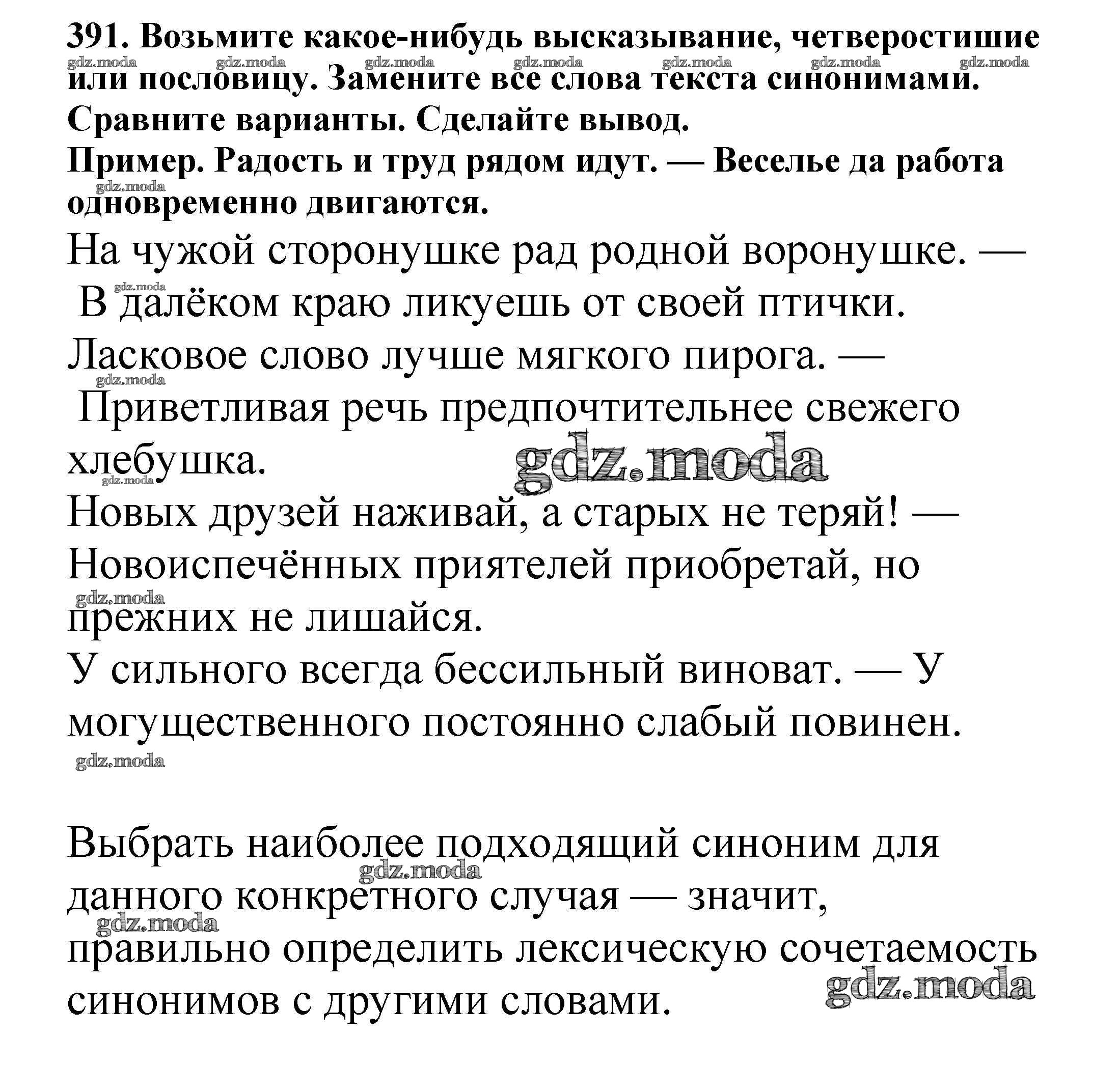 ГДЗ решение к заданию № 391 Русский язык 5 класс Ладыженская Т.А. Просвещение, Просвещение 2016, 2019 Часть 1, Часть 2 ФГОС бесплатно на гдз.мода!