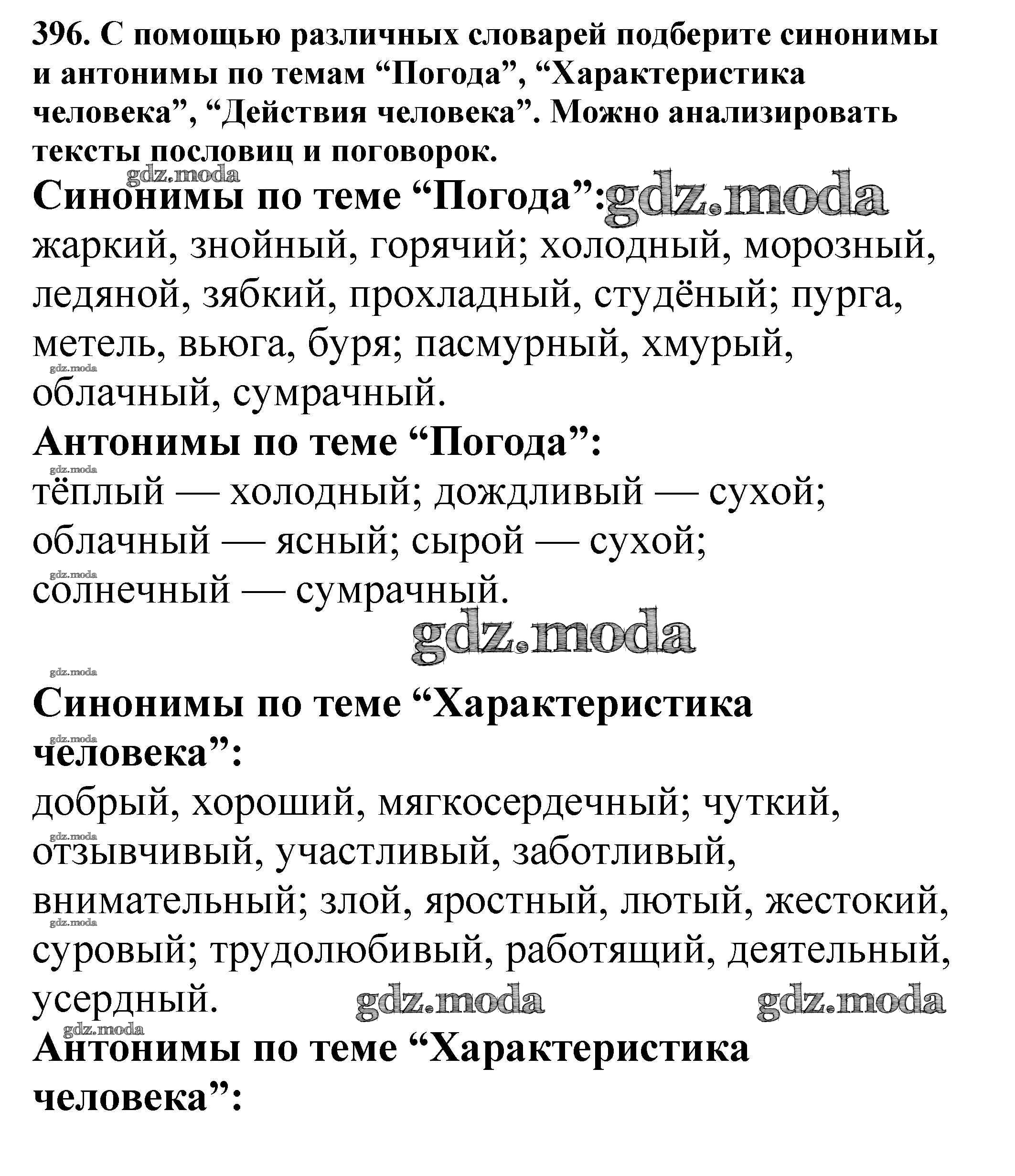 ГДЗ решение к заданию № 396 Русский язык 5 класс Ладыженская Т.А. Просвещение, Просвещение 2016, 2019 Часть 1, Часть 2 ФГОС бесплатно на гдз.мода!
