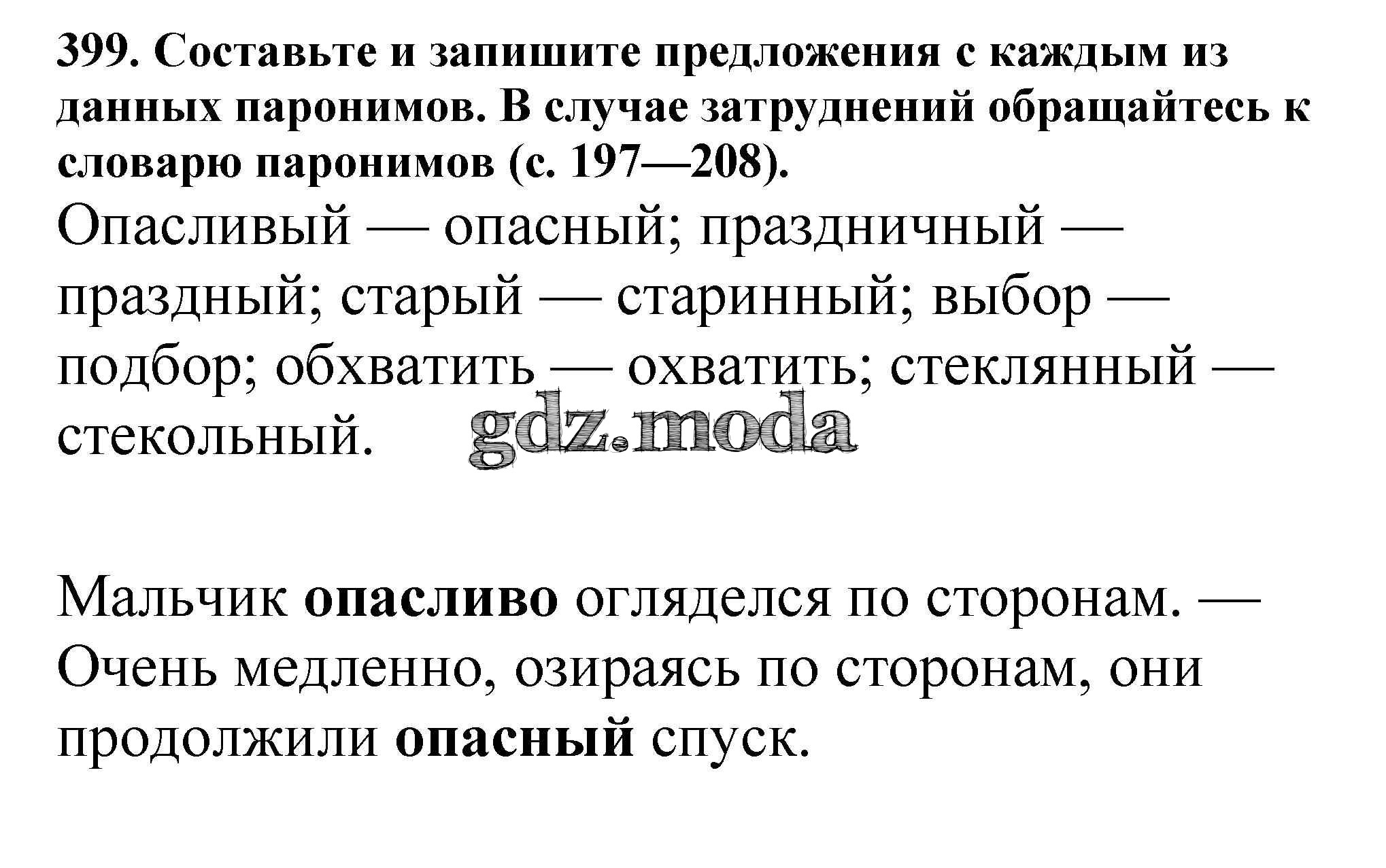 ОТВЕТ на задание № 399 Учебник по Русскому языку 5 класс Баранов