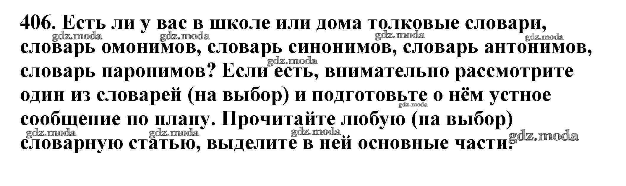 ГДЗ решение к заданию № 406 Русский язык 5 класс Ладыженская Т.А. Просвещение, Просвещение 2016, 2019 Часть 1, Часть 2 ФГОС бесплатно на гдз.мода!