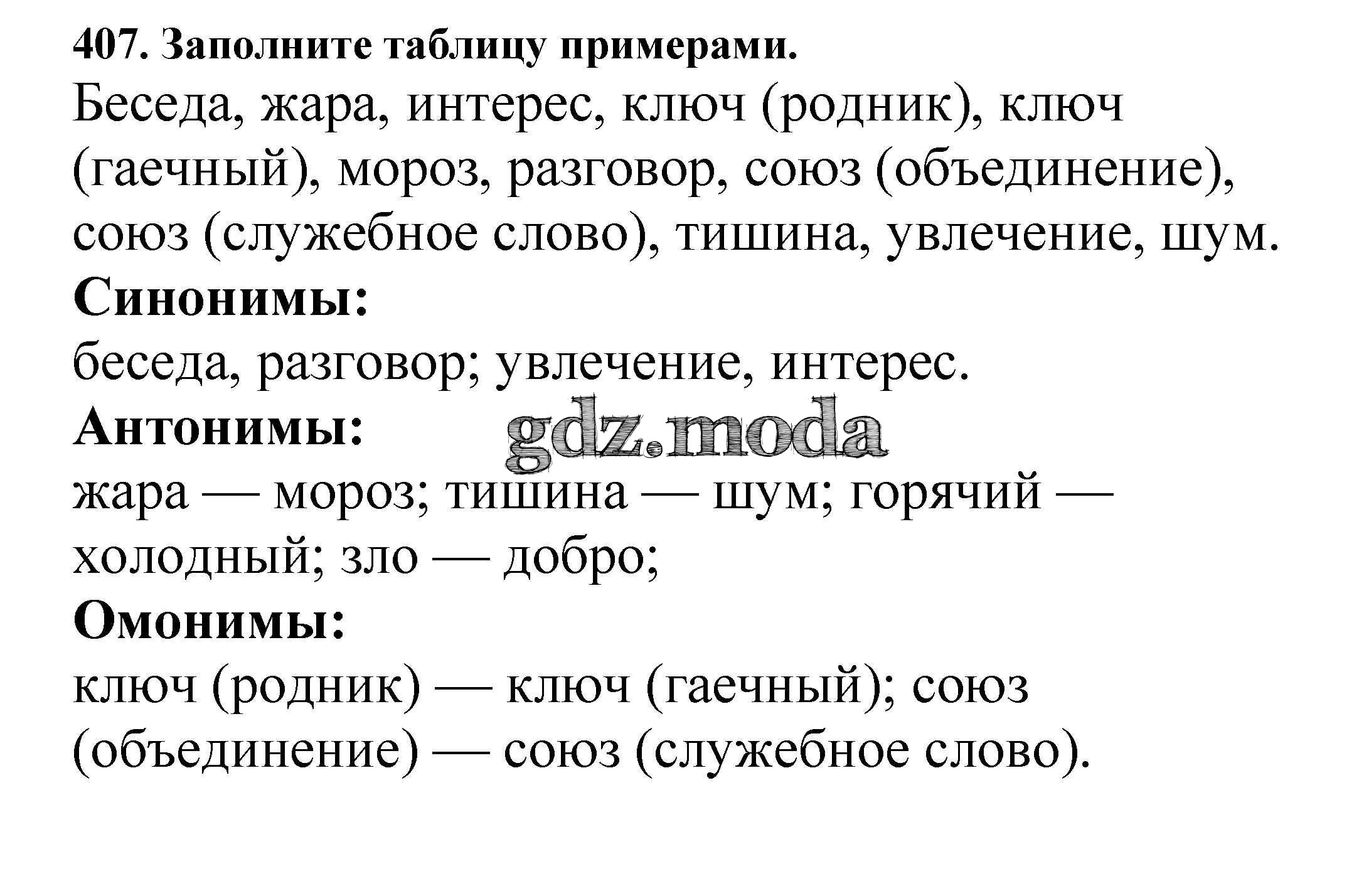 ОТВЕТ на задание № 407 Учебник по Русскому языку 5 класс Баранов