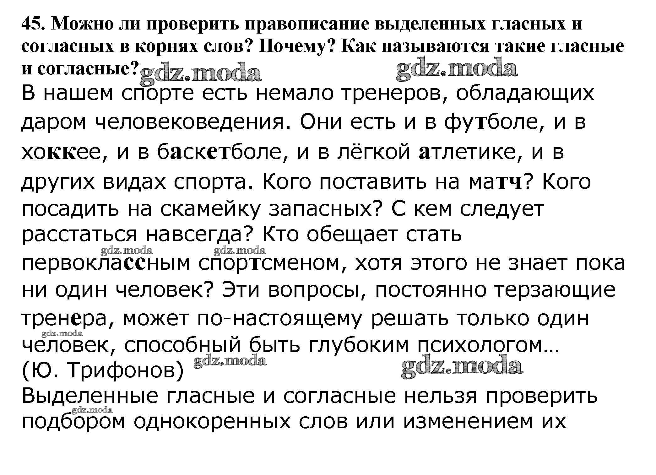 ОТВЕТ на задание № 45 Учебник по Русскому языку 5 класс Баранов