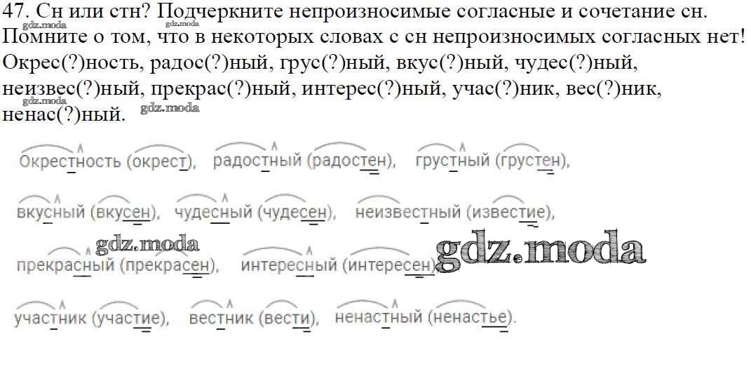 ОТВЕТ на задание № 47 Учебник по Русскому языку 5 класс Баранов