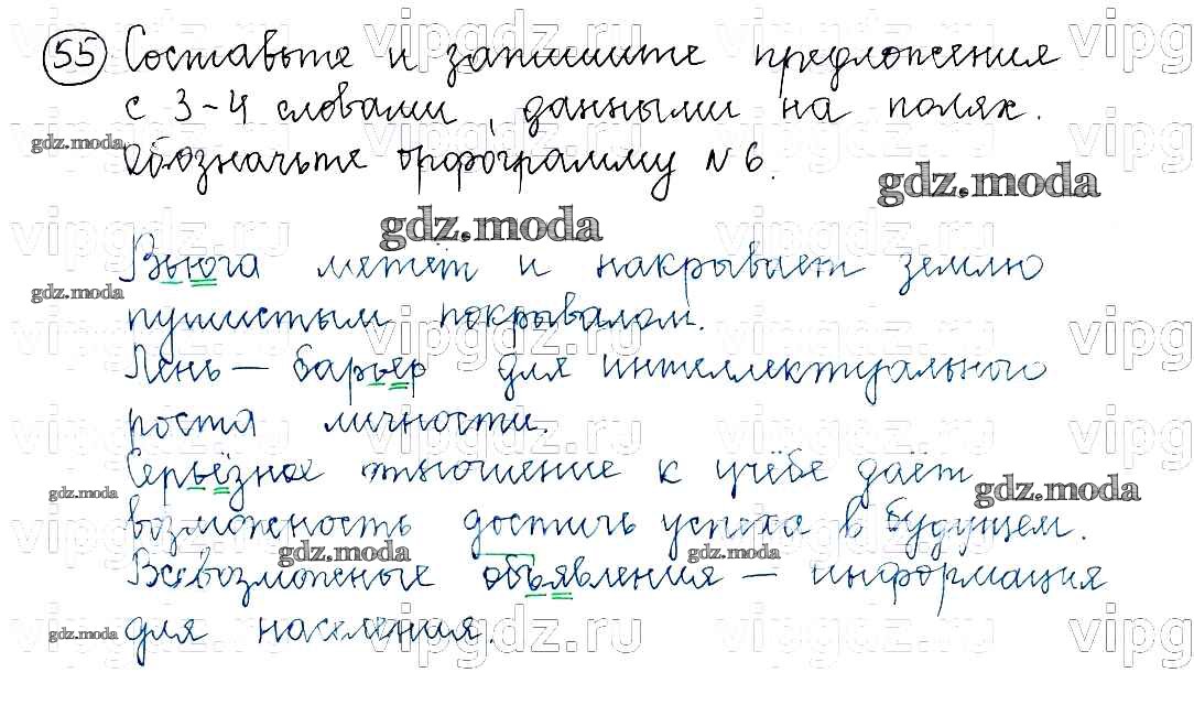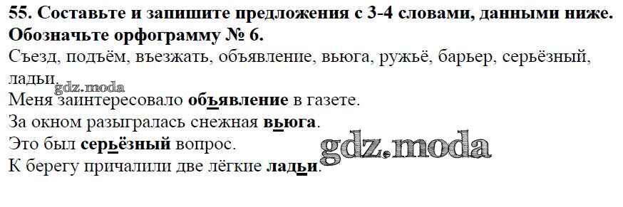 ОТВЕТ на задание № 55 Учебник по Русскому языку 5 класс Баранов