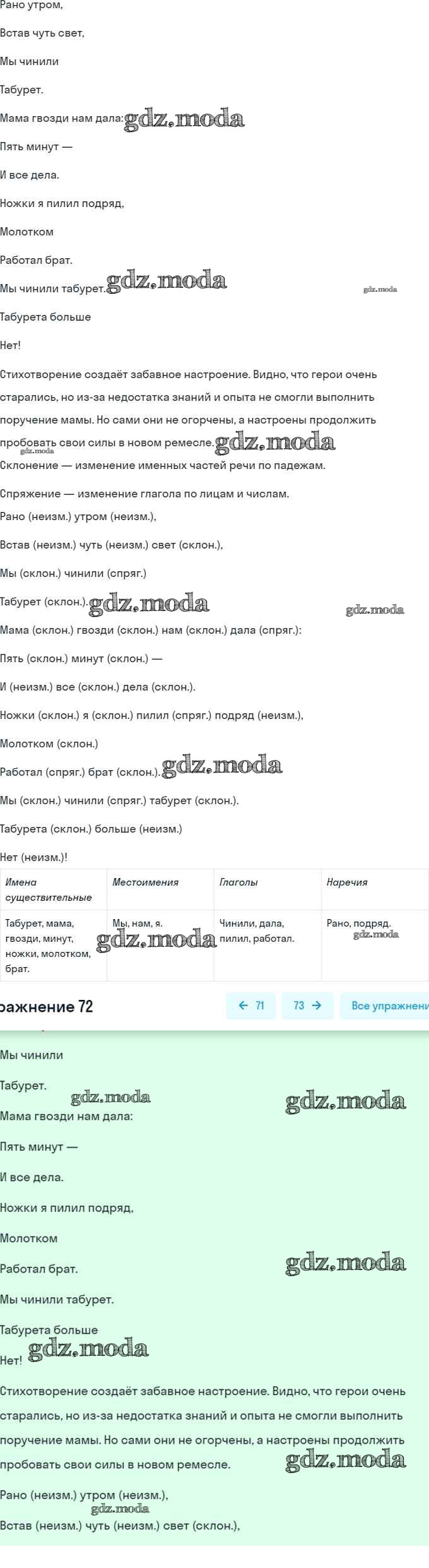 ГДЗ решение к заданию № 72 Русский язык 5 класс Ладыженская Т.А. Просвещение, Просвещение 2016, 2019 Часть 1, Часть 2 ФГОС бесплатно на гдз.мода!