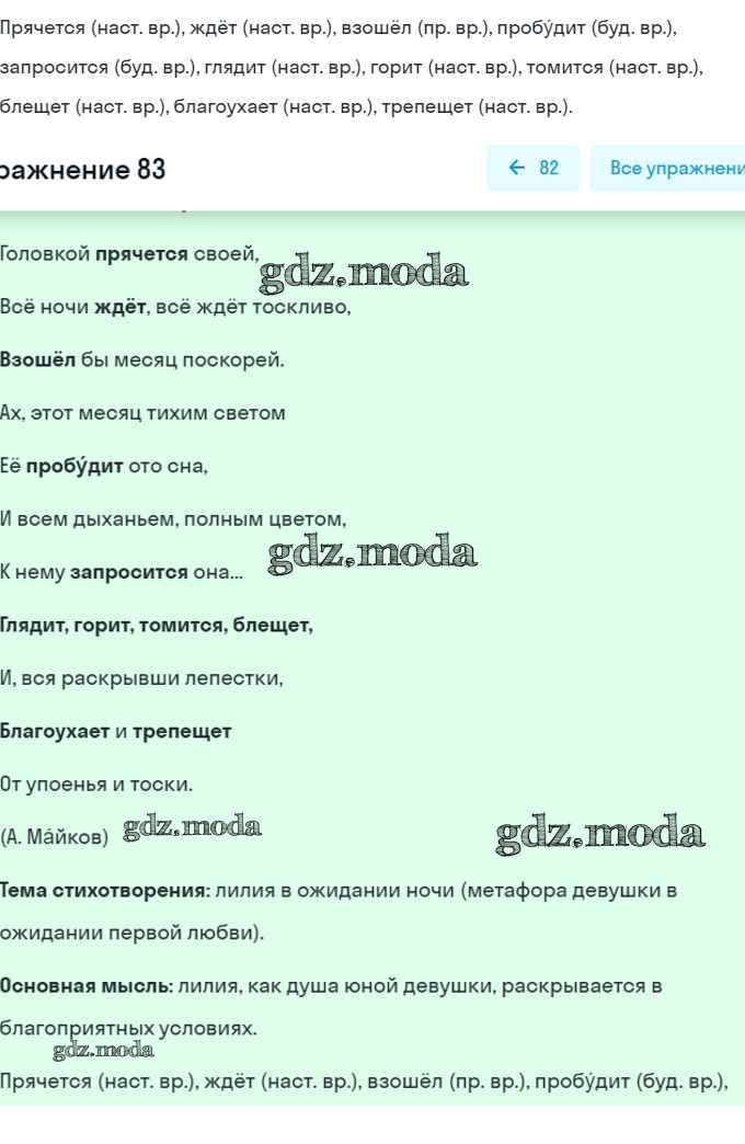 ОТВЕТ на задание № 83 Учебник по Русскому языку 5 класс Баранов