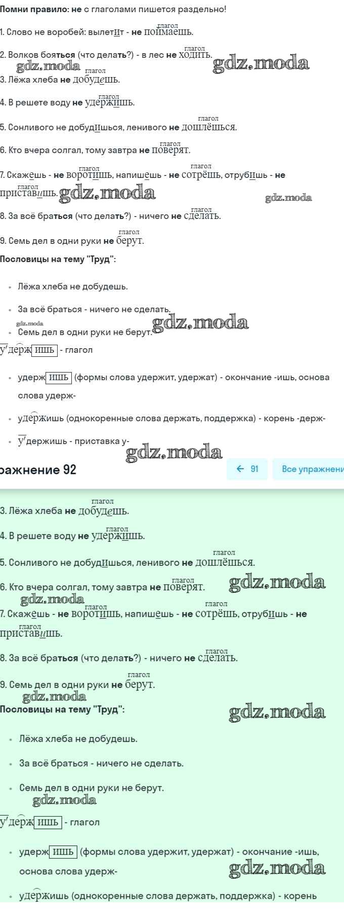 ГДЗ решение к заданию № 92 Русский язык 5 класс Ладыженская Т.А. Просвещение, Просвещение 2016, 2019 Часть 1, Часть 2 ФГОС бесплатно на гдз.мода!