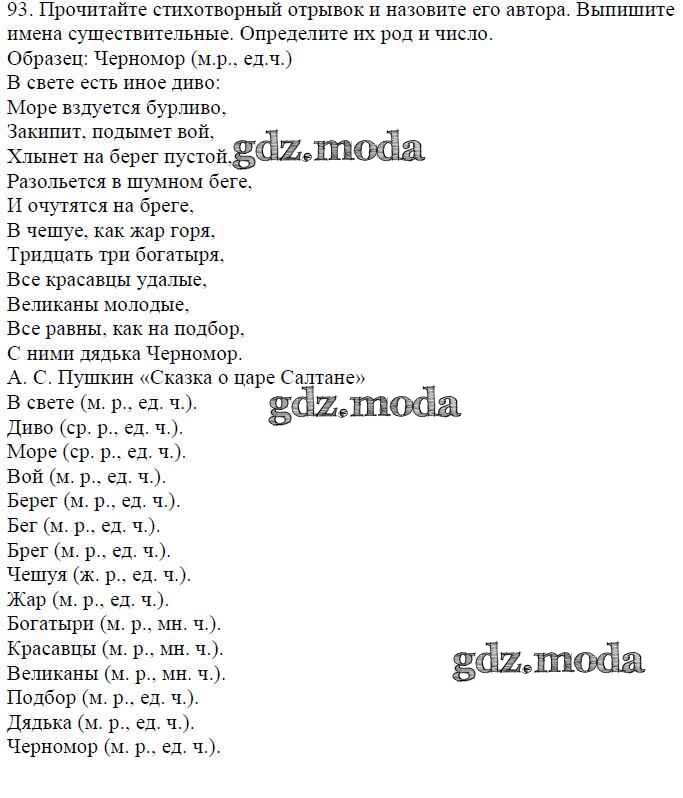 ОТВЕТ на задание № 93 Учебник по Русскому языку 5 класс Баранов