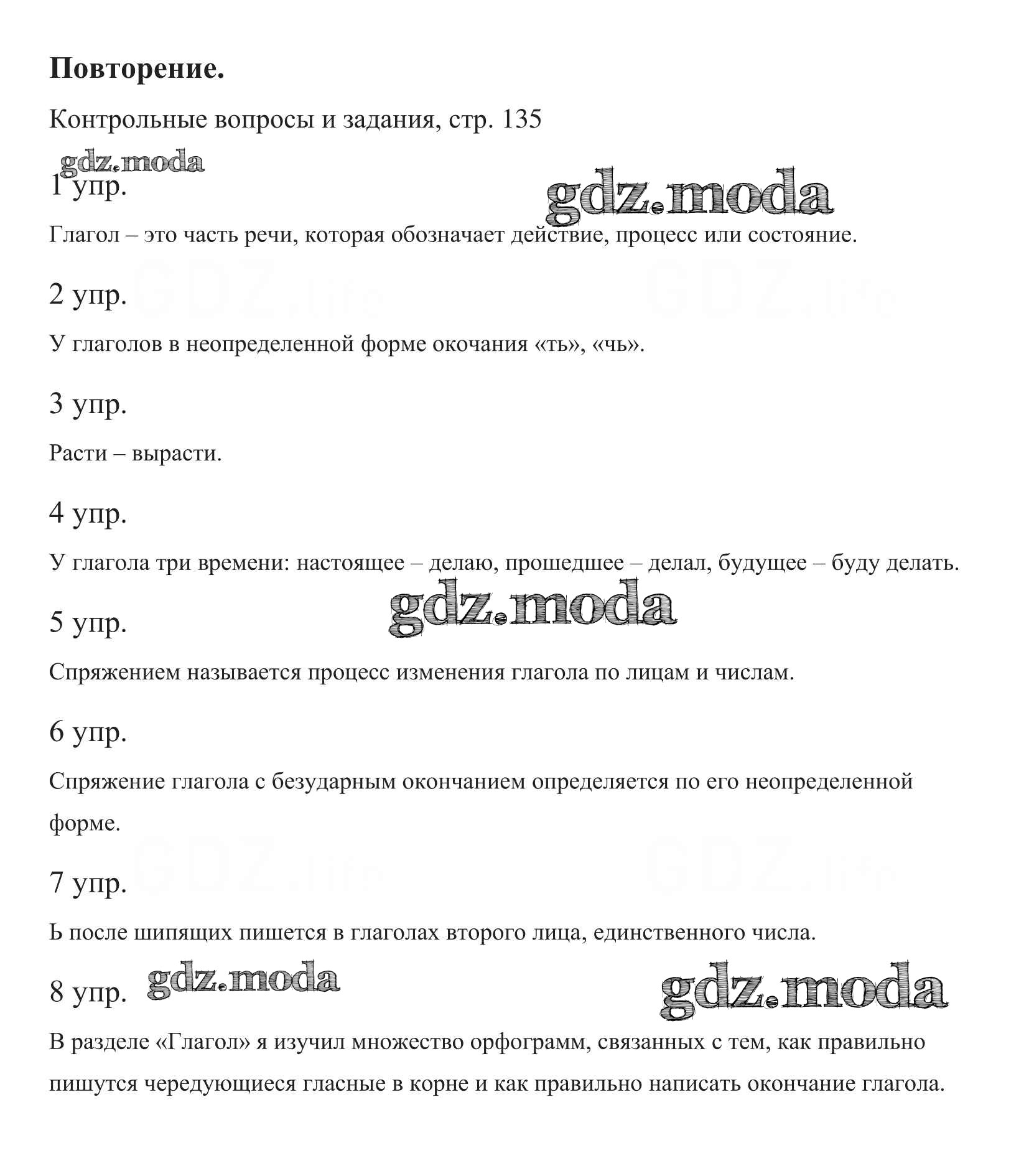 часть 2. упражнение / повторение. контрольный вопрос и задание / стр.135 (154)