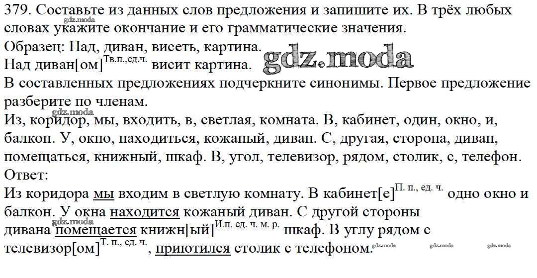 ОТВЕТ на задание № 379 Учебник по Русскому языку 5 класс Баранов