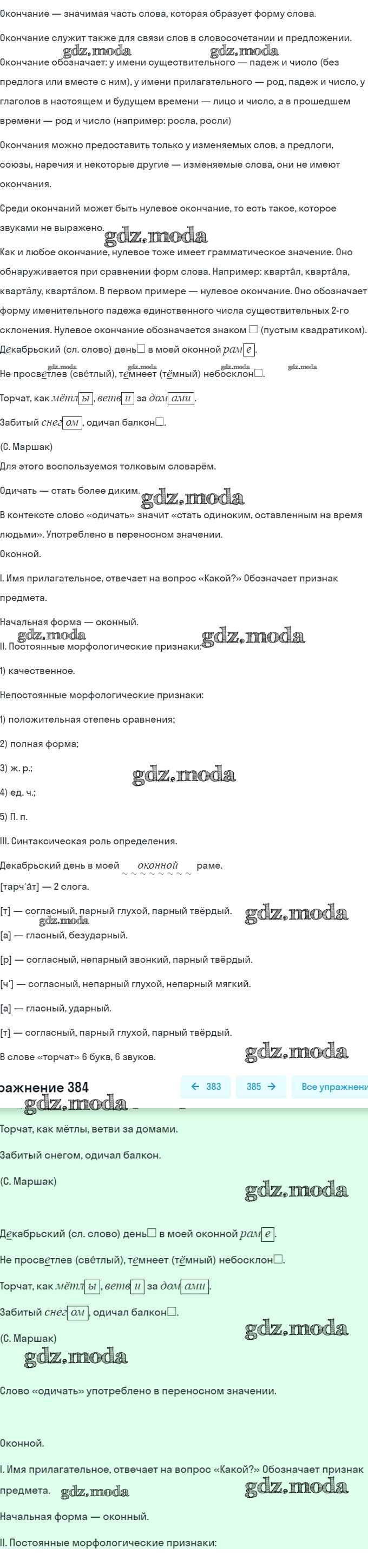 ОТВЕТ на задание № 384 Учебник по Русскому языку 5 класс Баранов