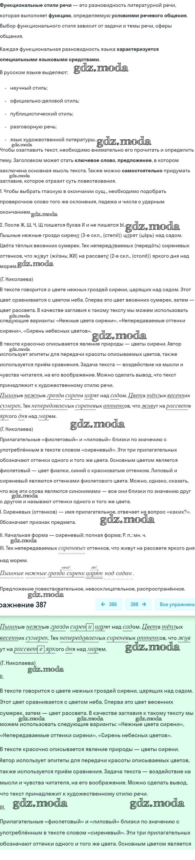 ГДЗ решение к заданию № 387 Русский язык 5 класс Ладыженская Т.А. Просвещение, Просвещение 2016, 2019 Часть 1, Часть 2 ФГОС бесплатно на гдз.мода!