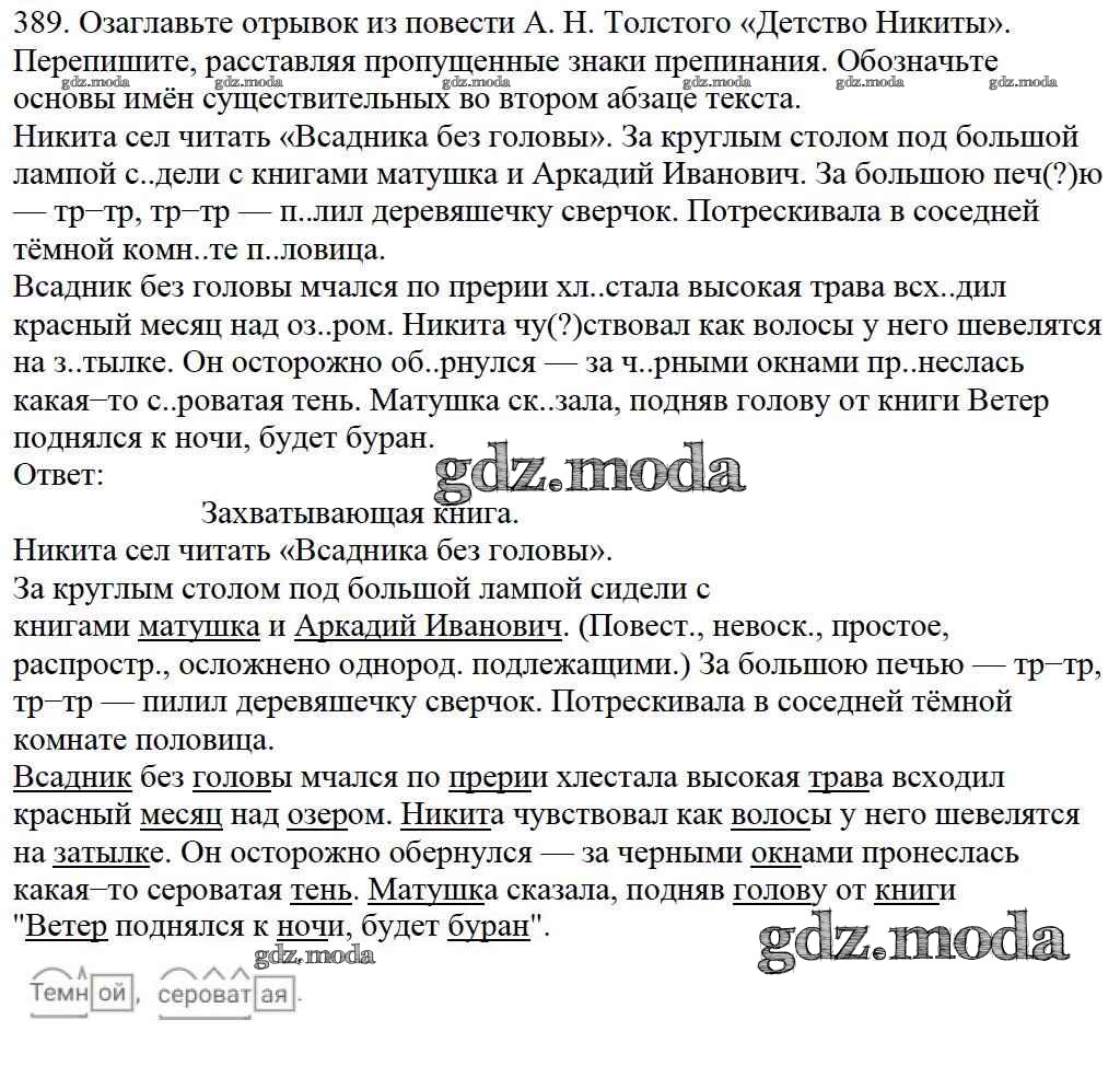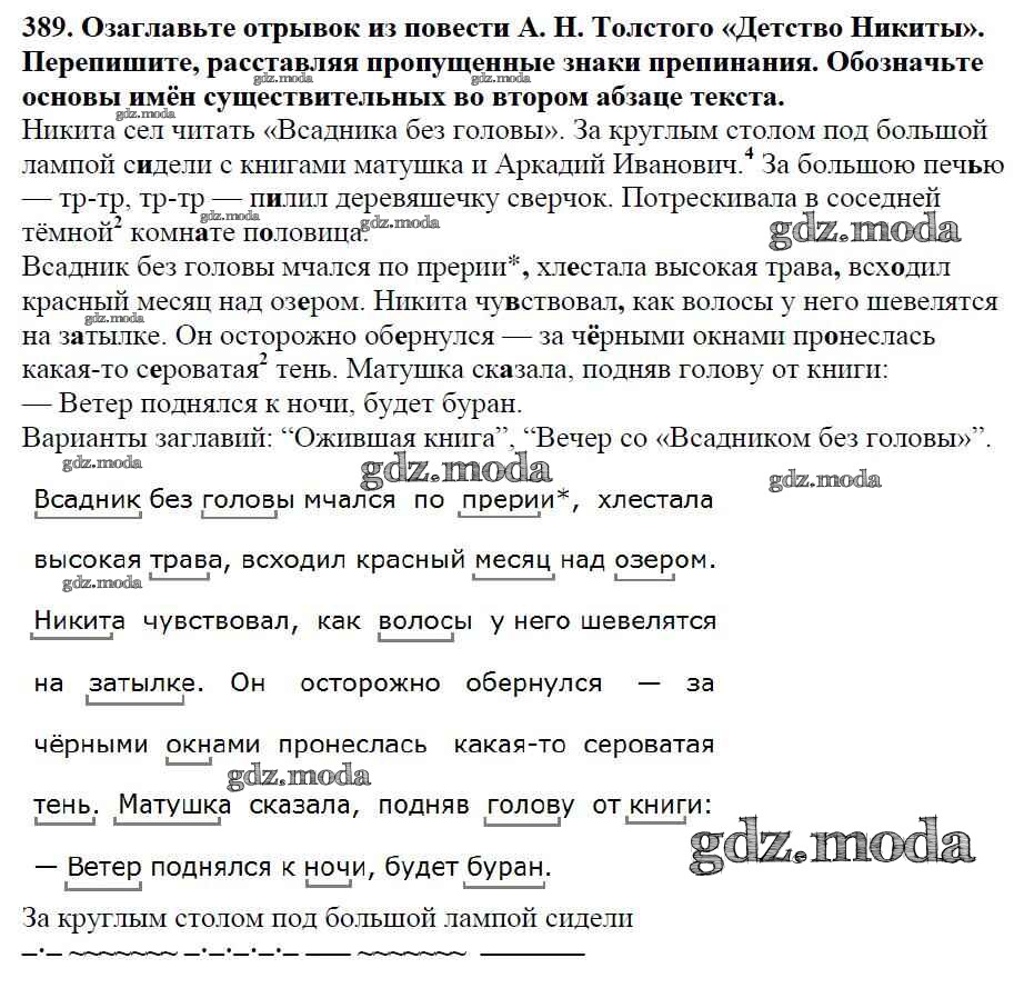 ОТВЕТ на задание № 389 Учебник по Русскому языку 5 класс Баранов