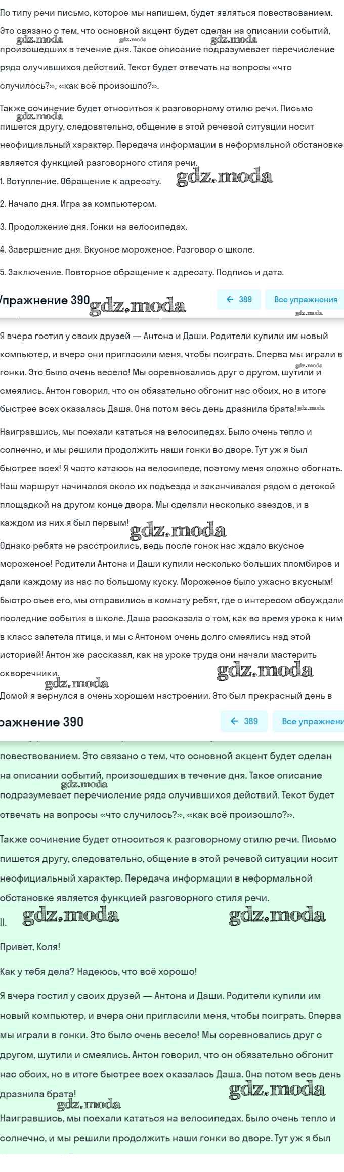 ОТВЕТ на задание № 390 Учебник по Русскому языку 5 класс Баранов