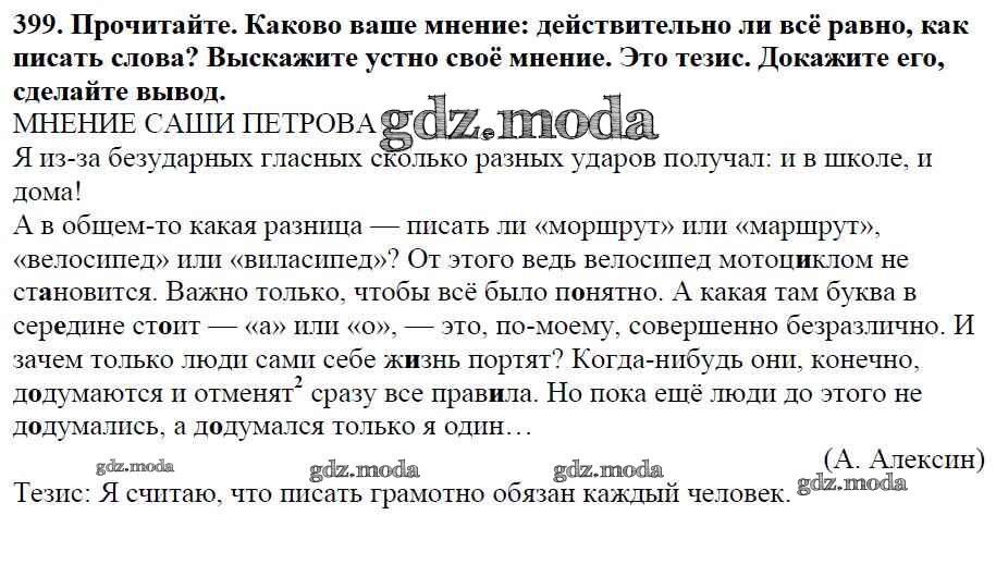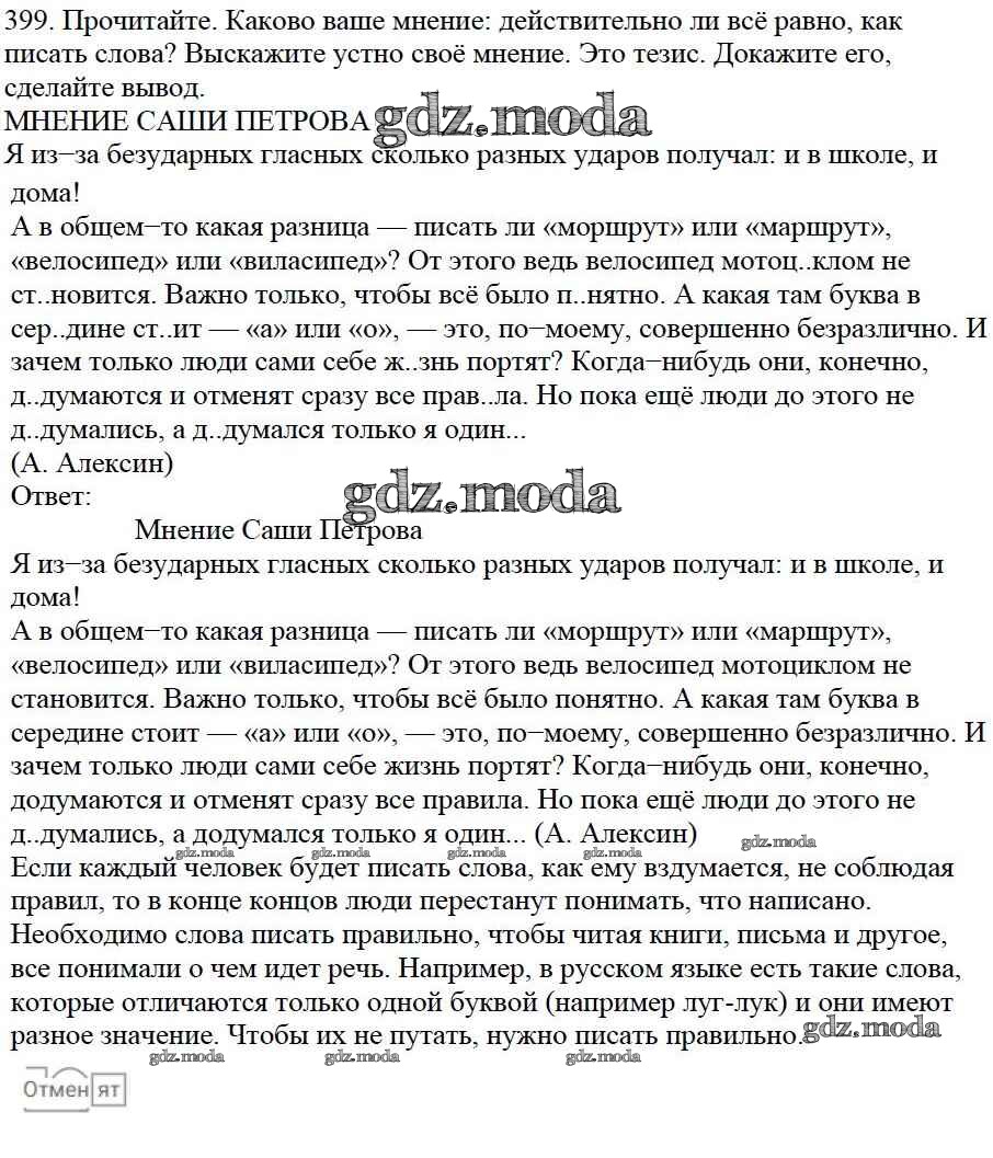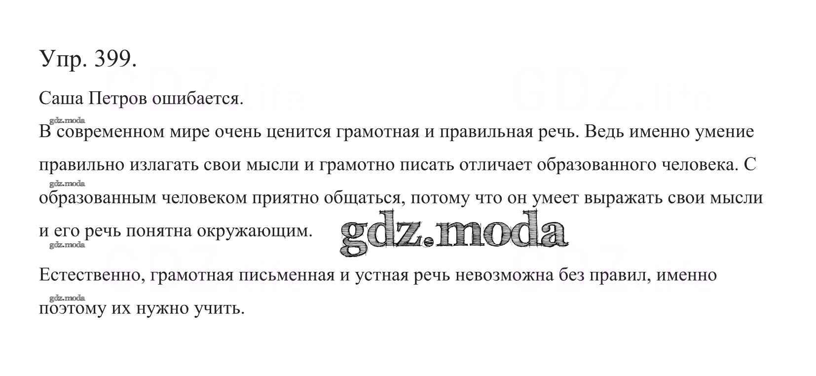 ОТВЕТ на задание № 399 Учебник по Русскому языку 5 класс Баранов